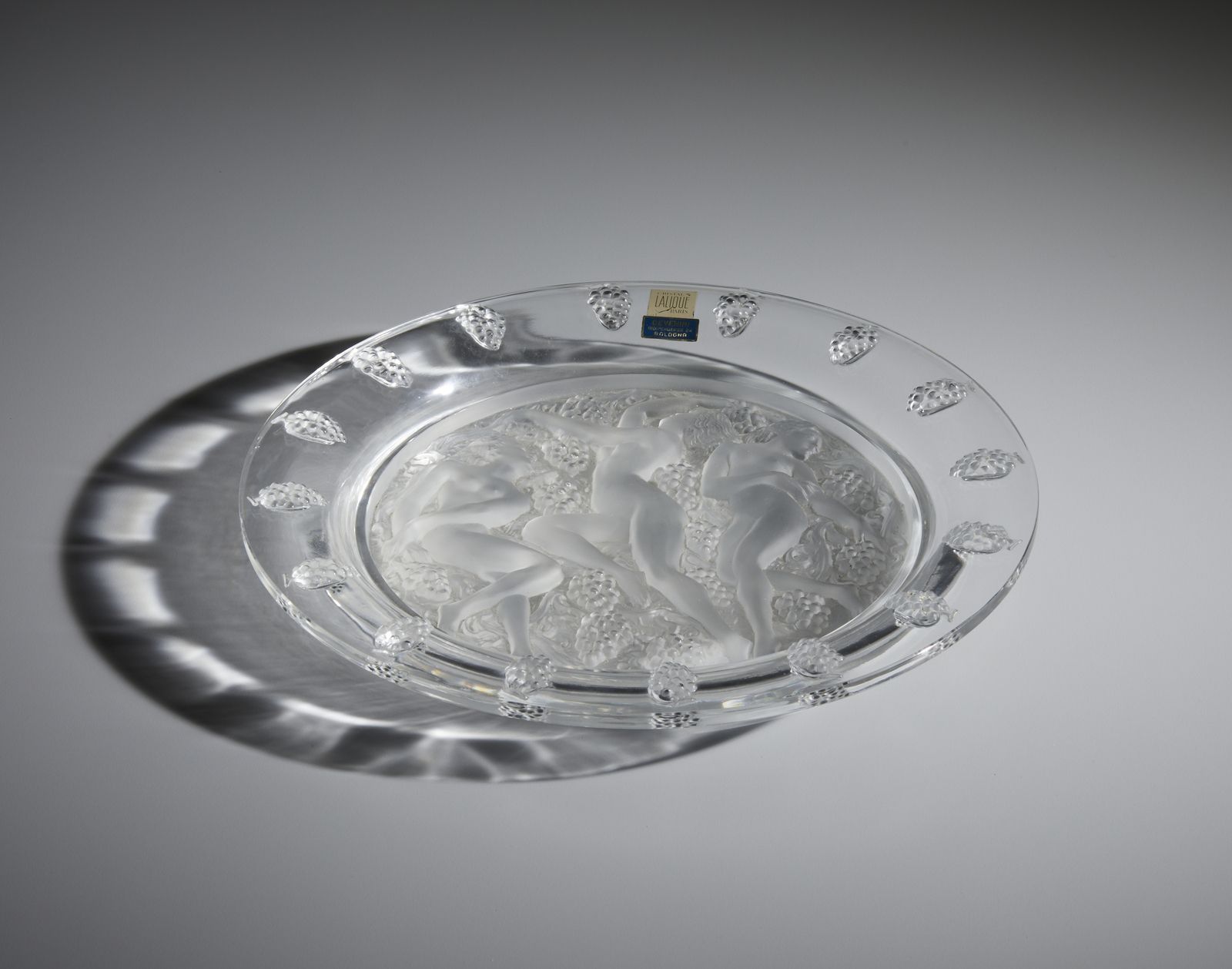 Derivante dal modello del 1943 pubblicato in R. Marcilhac, ''René Lalique, Catalogne Raisonné de l'oeuvre de verre'', Parigi 1989, sezione ''Coupes et Assiettes'' n°10-406 p. 312.