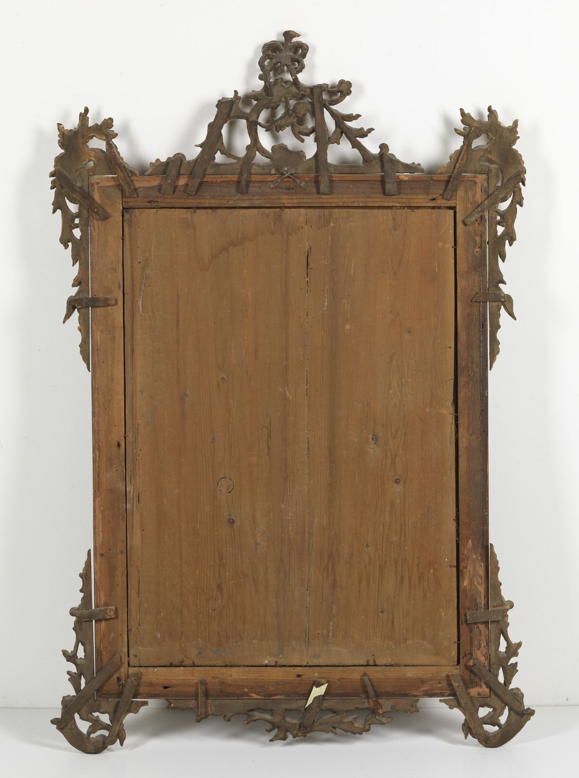 Specchiera in legno intagliato e dorato, battuta a nastro ritorto su gola seguita [..]