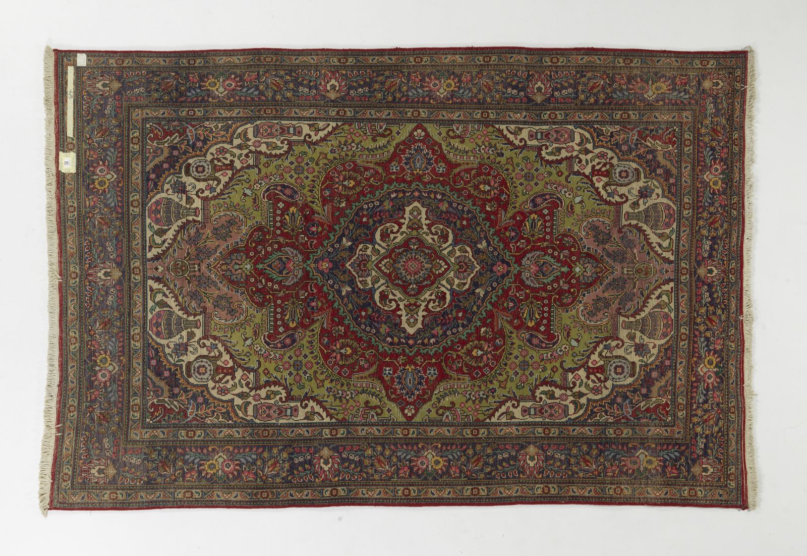 Tappeto con medaglione centrale entro campo fittamente decorato a motivi fitomorfi [..]
