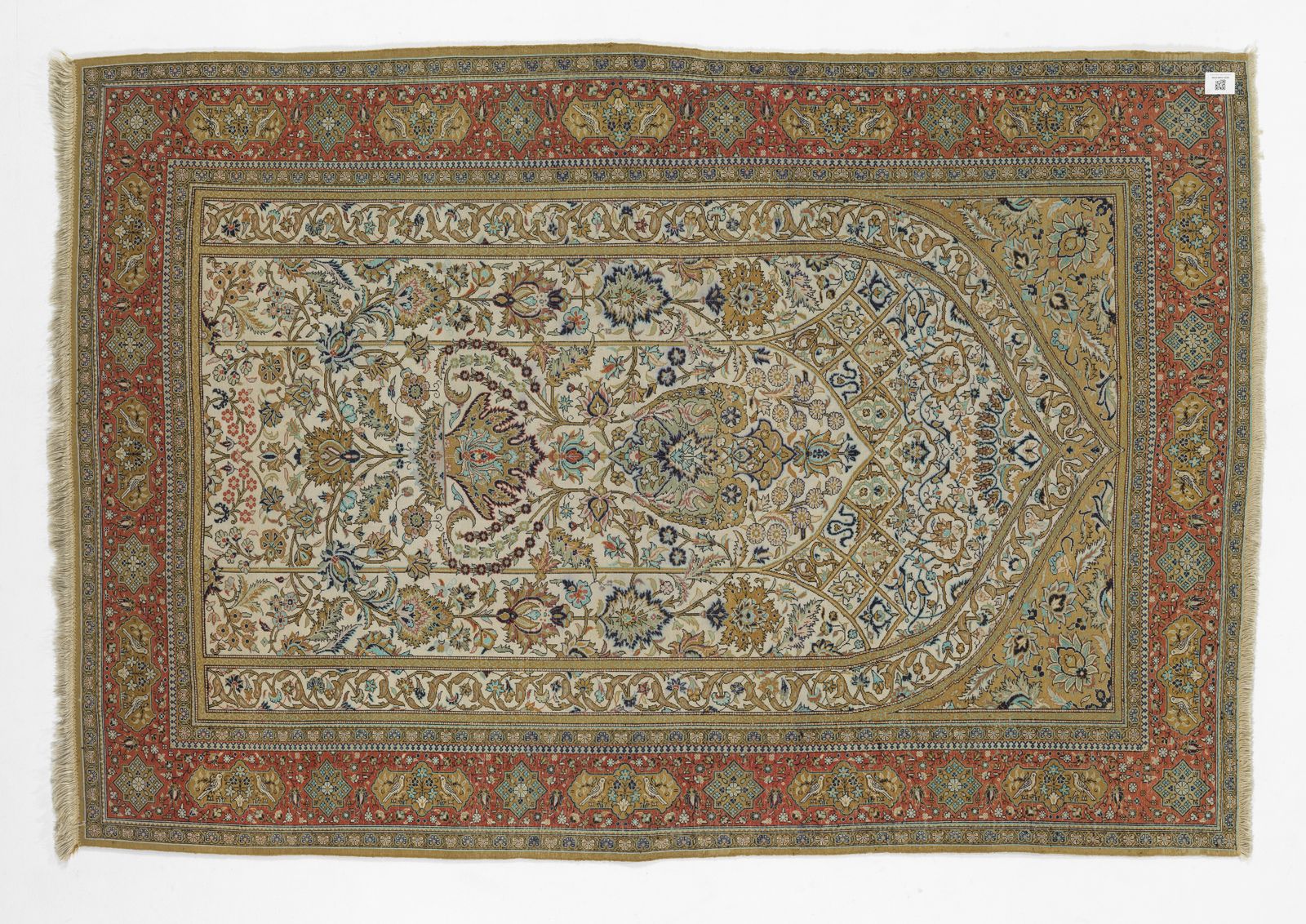Tappeto da preghiera con nicchia centrale incorniciata da fascia esterna a motivi [..]