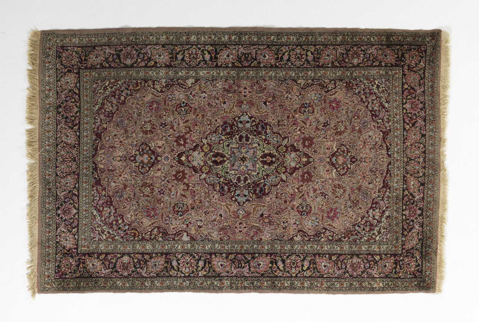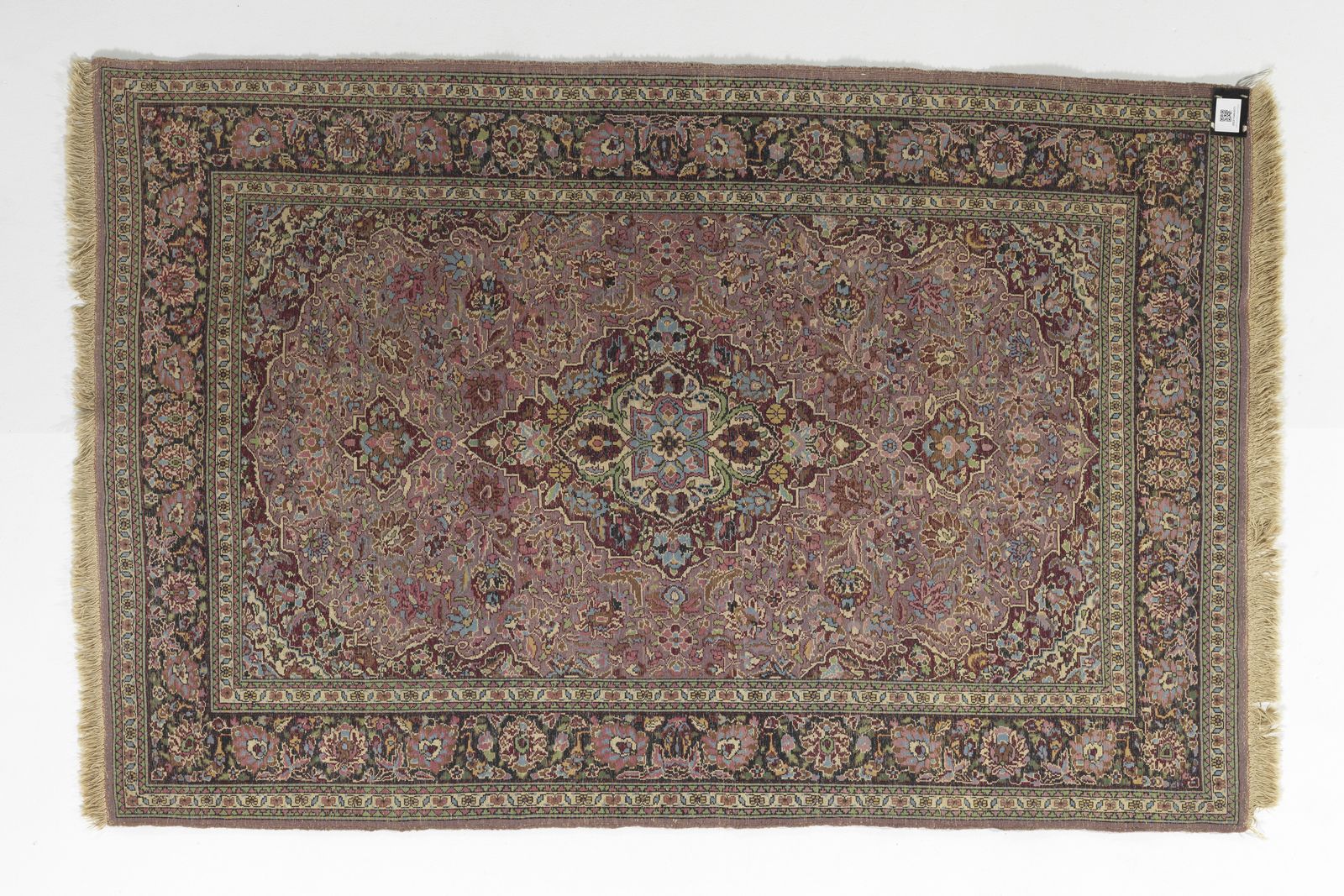 Tappeto nei toni del rosso e del bruno con medaglione nel campo centrale fittamente [..]