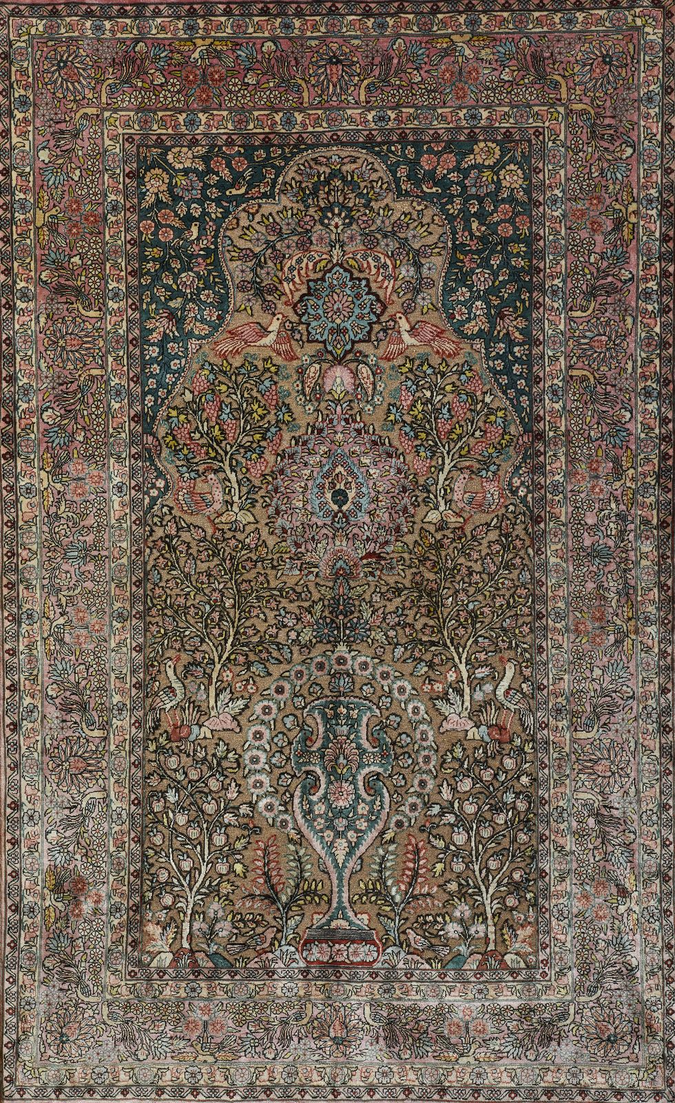 Tappeto raffigurante l'albero della vita entro un nicchia, in campo fittamente decorato [..]