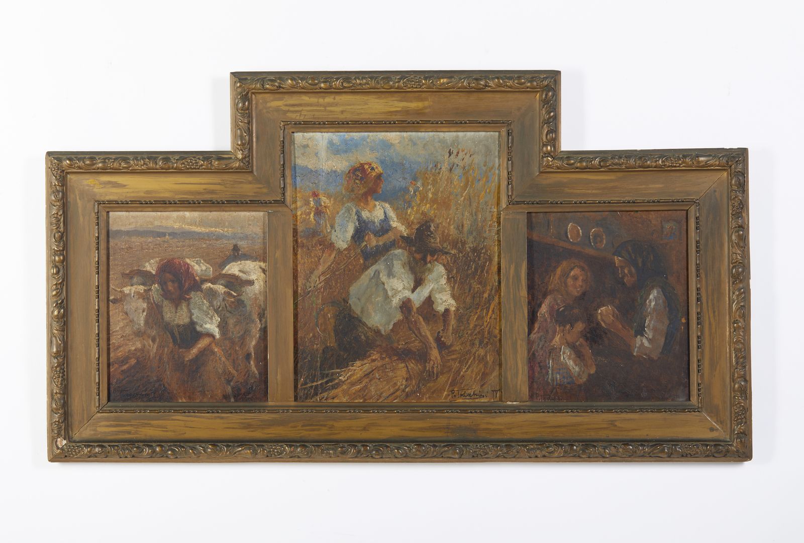 Dimensioni totali comprensive di cornice. Dimensioni singoli pannelli: 44x35 cm, 32x27 cm, 32x27cm. Firmato e datato nei singoli pannelli.