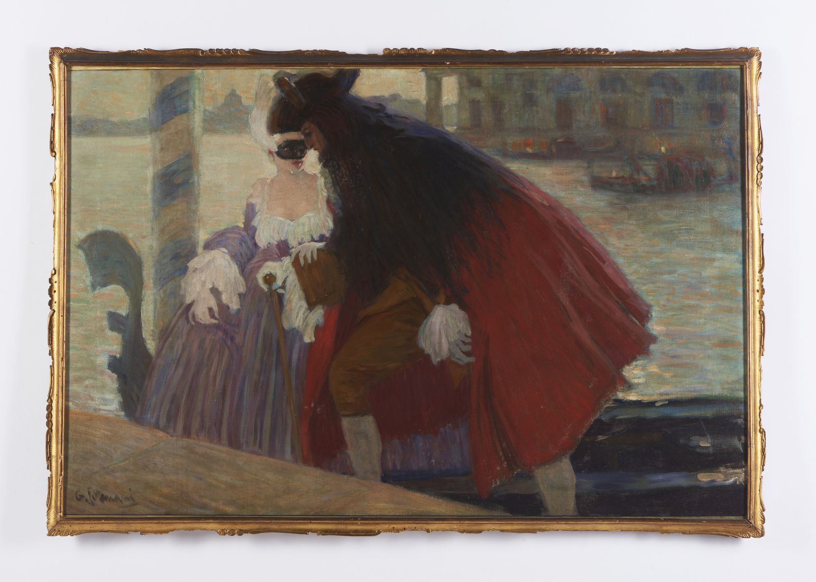 Veduta veneziana con personaggi in maschera