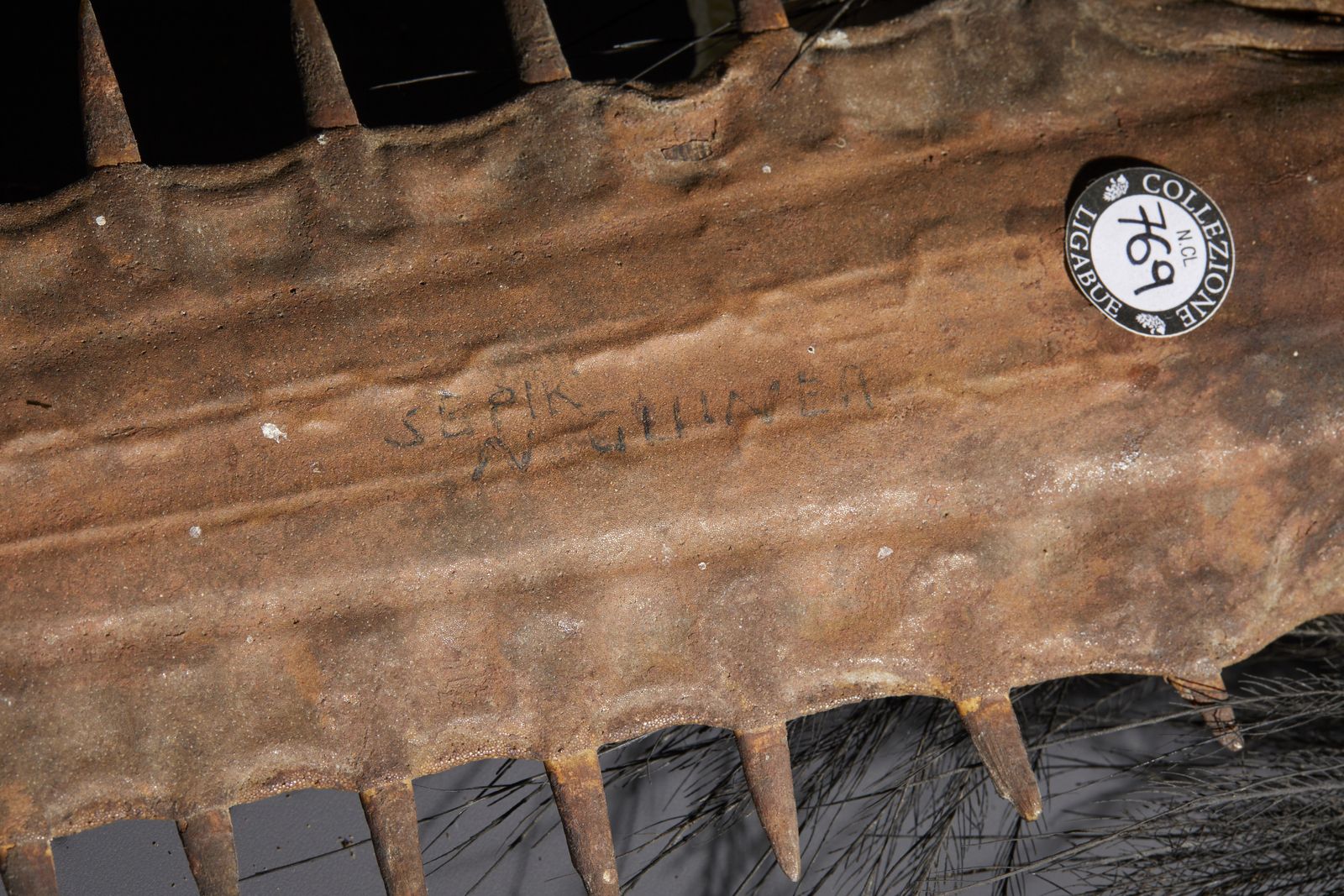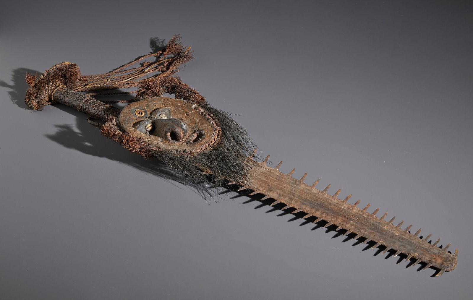 Proveniente dalla cultura del fiume Sepik e ideata con un rostro di pesce sega in sostituzione della lama. Provenienza: Ex Collezione Roberto Di Giacomo, Venezia, 1975. Bibliografia: pubblicata in Ligabue Magazine N 28, pag. 79