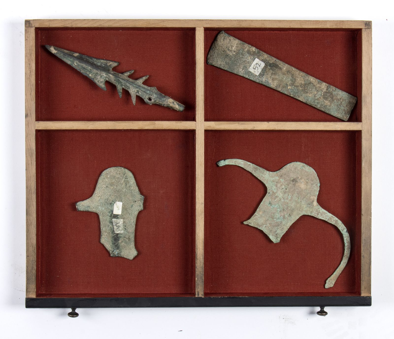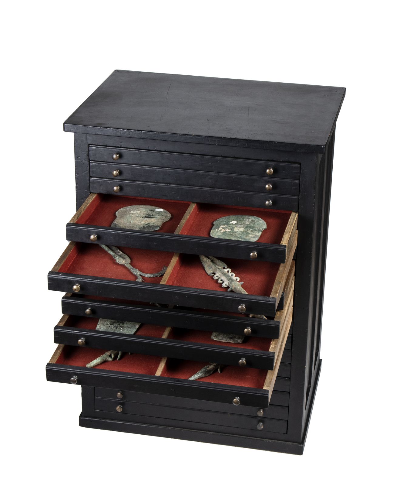 dalle forme più disparate (figure antropomorfe, teste d'ascia, punte di lancia). Gli oggetti sono classificati e contenuti all'interno di un mobile a cassetti vittoriano foderato di stoffa purpurea.