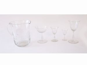 composto da 10 calici da acqua, 10 calici da vino, 10 coppe da spumante, 8 calici da vino dolce, 10 da liquore, [..]