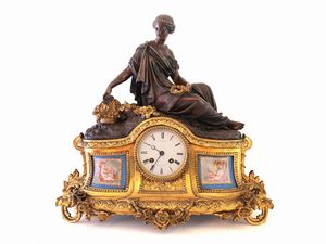 h cm 40x43 in antimonio dorato e patinato, sormontato da figura femminile classica, base decorata da placche in [..]