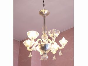 h cm 130, diam cm 90 circa Barovier e Toso, Anni Sessanta sei bracci portacandele a doppia voluta sormontati [..]