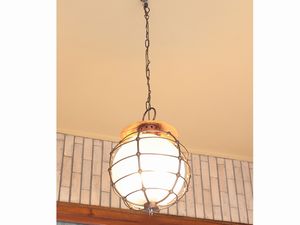 h cm 40 di forma sferica, coppa in vetro opalino, struttura realizzata a grata, difetti
