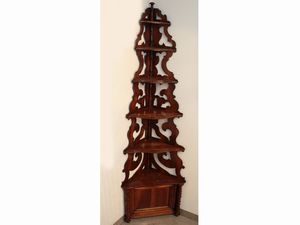 h cm 213x71x42 seconda metà del XIX secolo realizzate come due angoliere con sei ripiani sagomati degradé, interamente [..]
