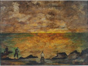 cm 36x50, cm 44x57, cm 48x37 (3) tra cui un dipinto di Basso Ragni raffigurante un interno di stalla con cavalli [..]