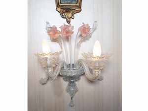 h cm 40 Anni Cinquanta realizzate in vetro incolore con dettagli rosa con inclusioni dorate, due bracci portacandele [..]