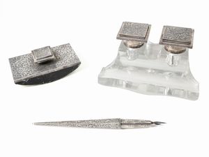 calamaio h cm 9x20x12 (3) finemente cesellato a intrecci di volute in stile fiorentino, composto da calamaio con [..]