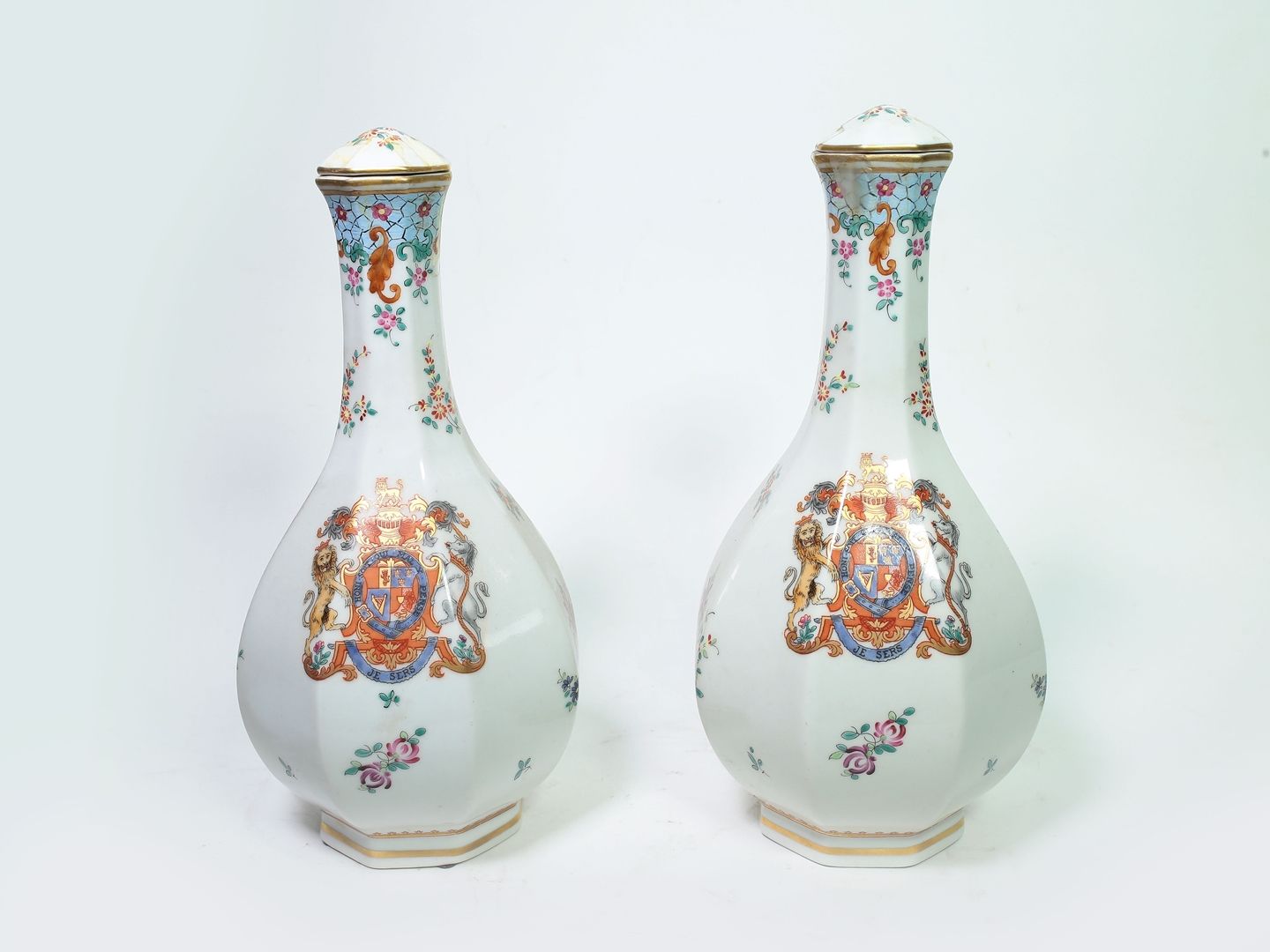dipinti con motivi floreali e stemma di Casa Windsor nello stile della Compagnia delle Indie, lievi difetti