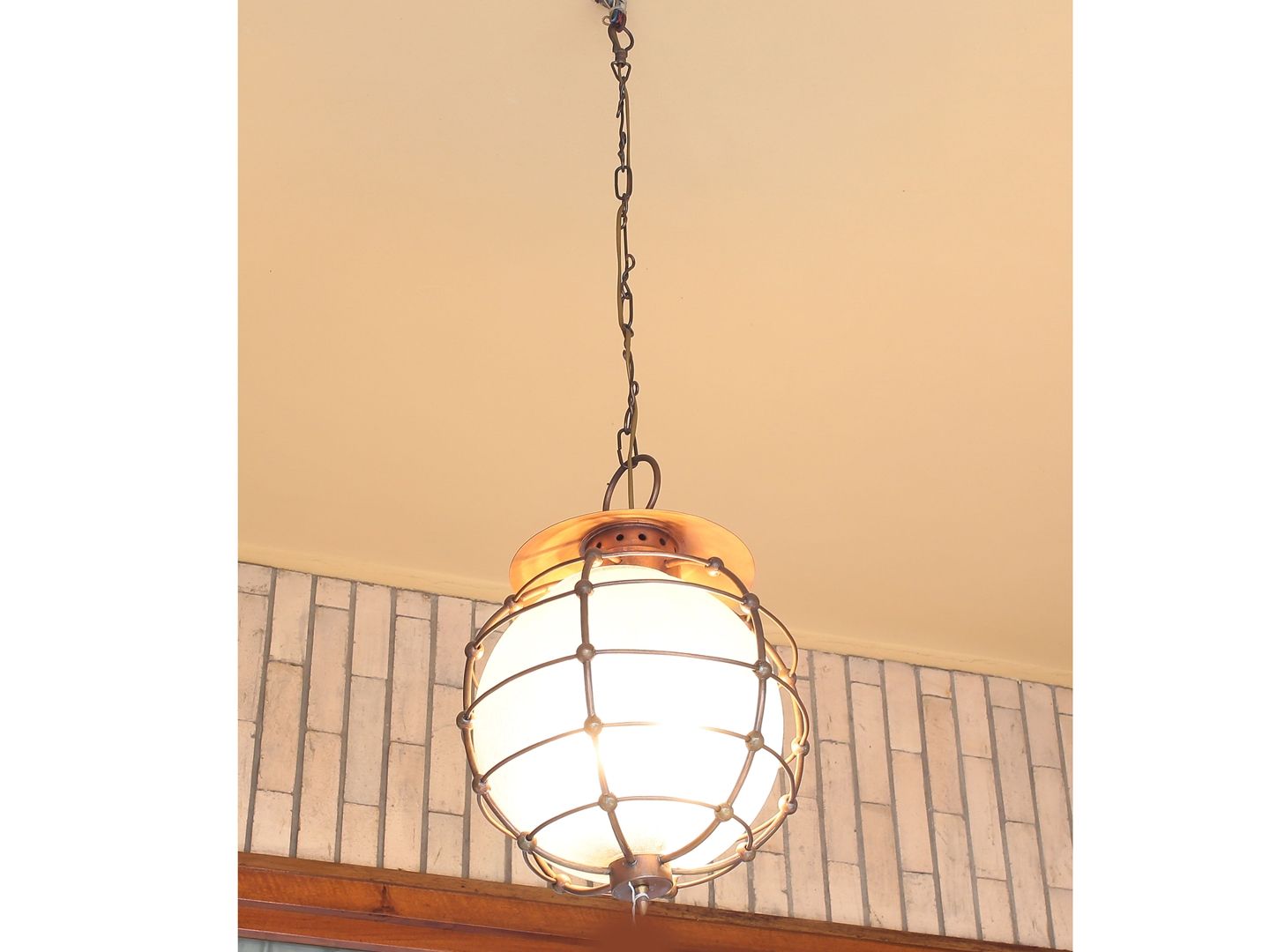 di forma sferica, coppa in vetro opalino, struttura realizzata a grata, difetti
