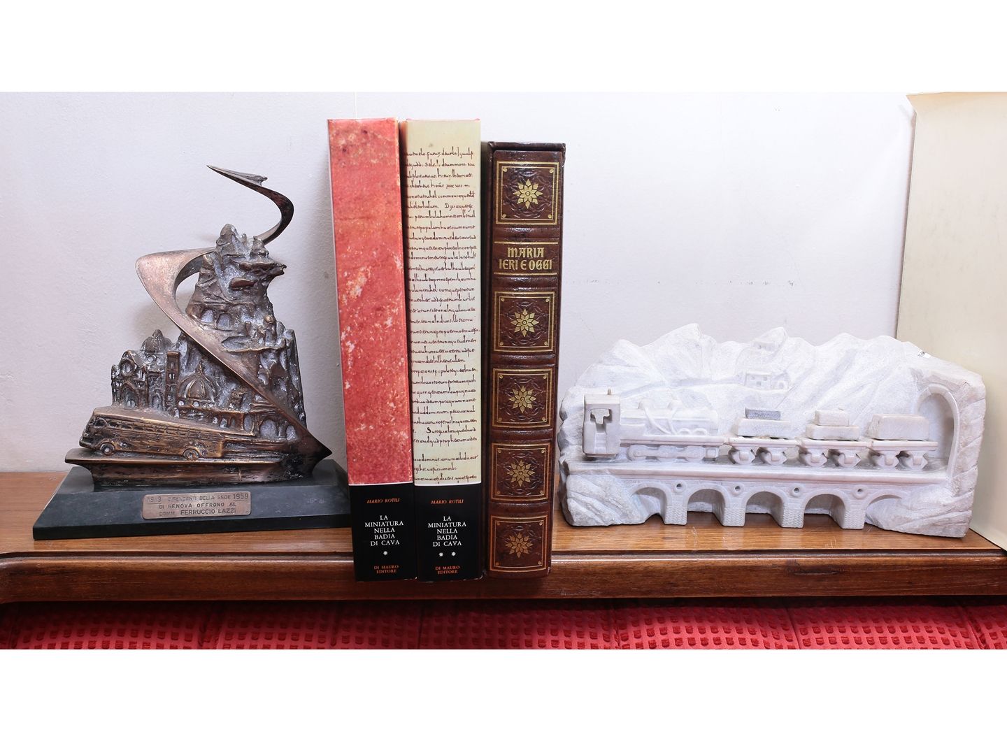 composto da un gruppo in alabastro riproducente un treno in un paesaggio montano e da un trofeo commemorativo delle autolinee Lazzi realizzato nel 1959
