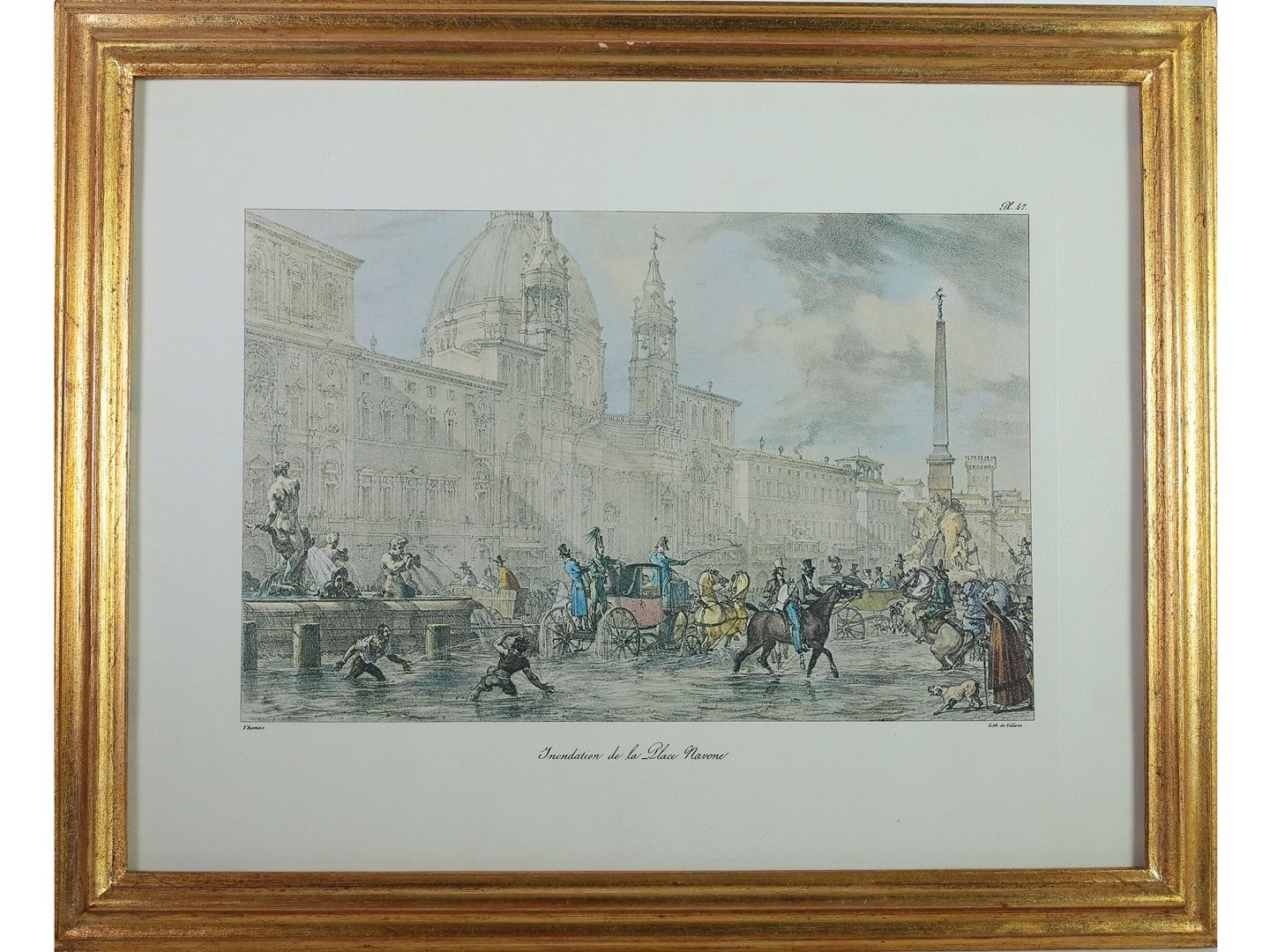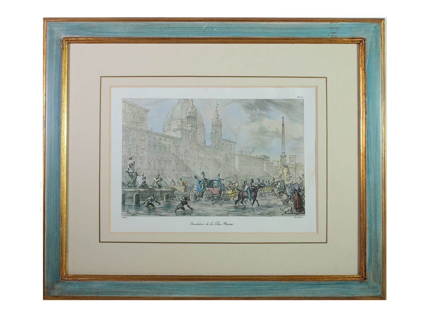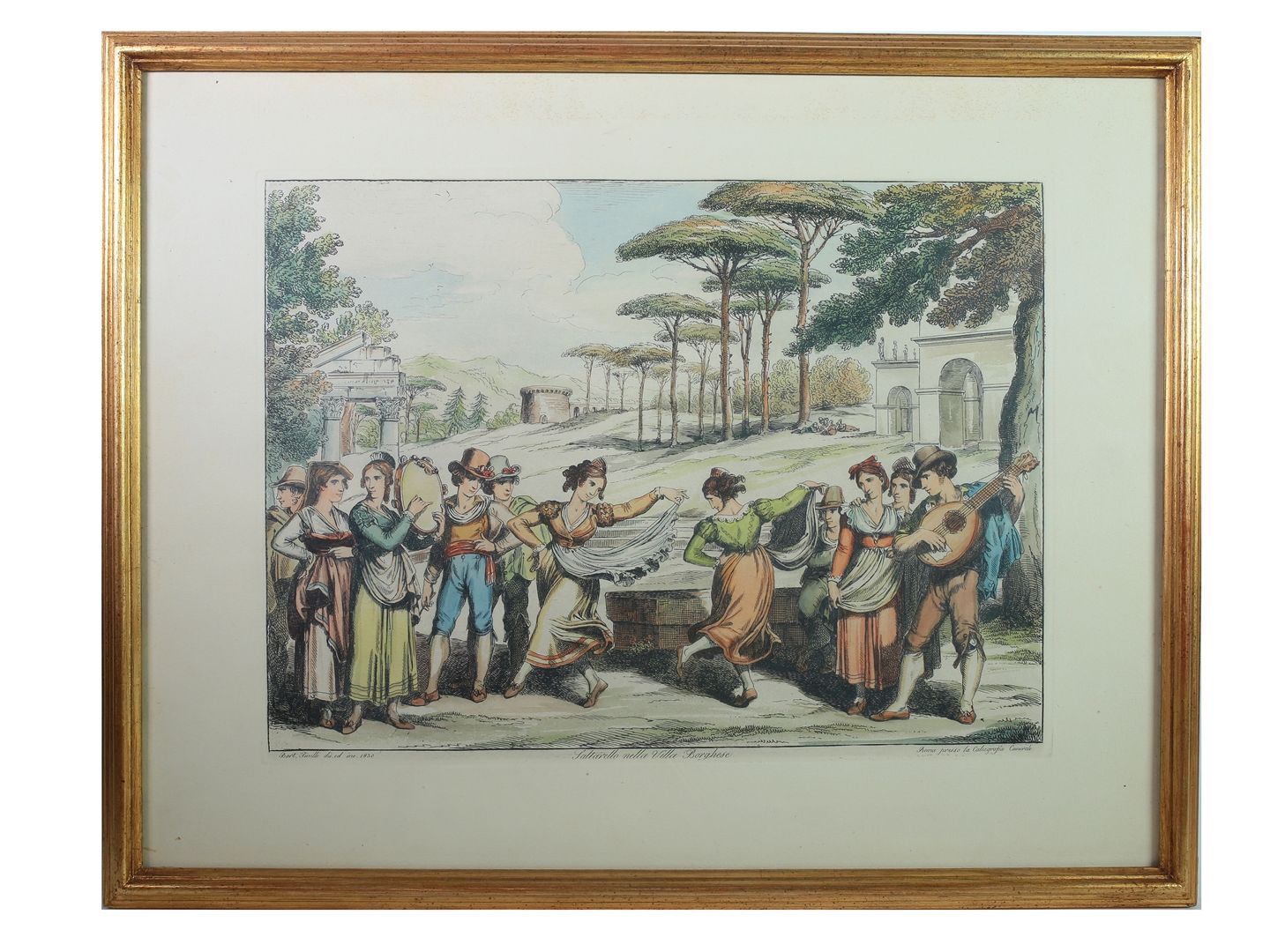 tra cui un'incisione di Bartolomeo Pinelli raffigurante il Saltarello nella Villa Borghese, in cornice, alcuni difetti