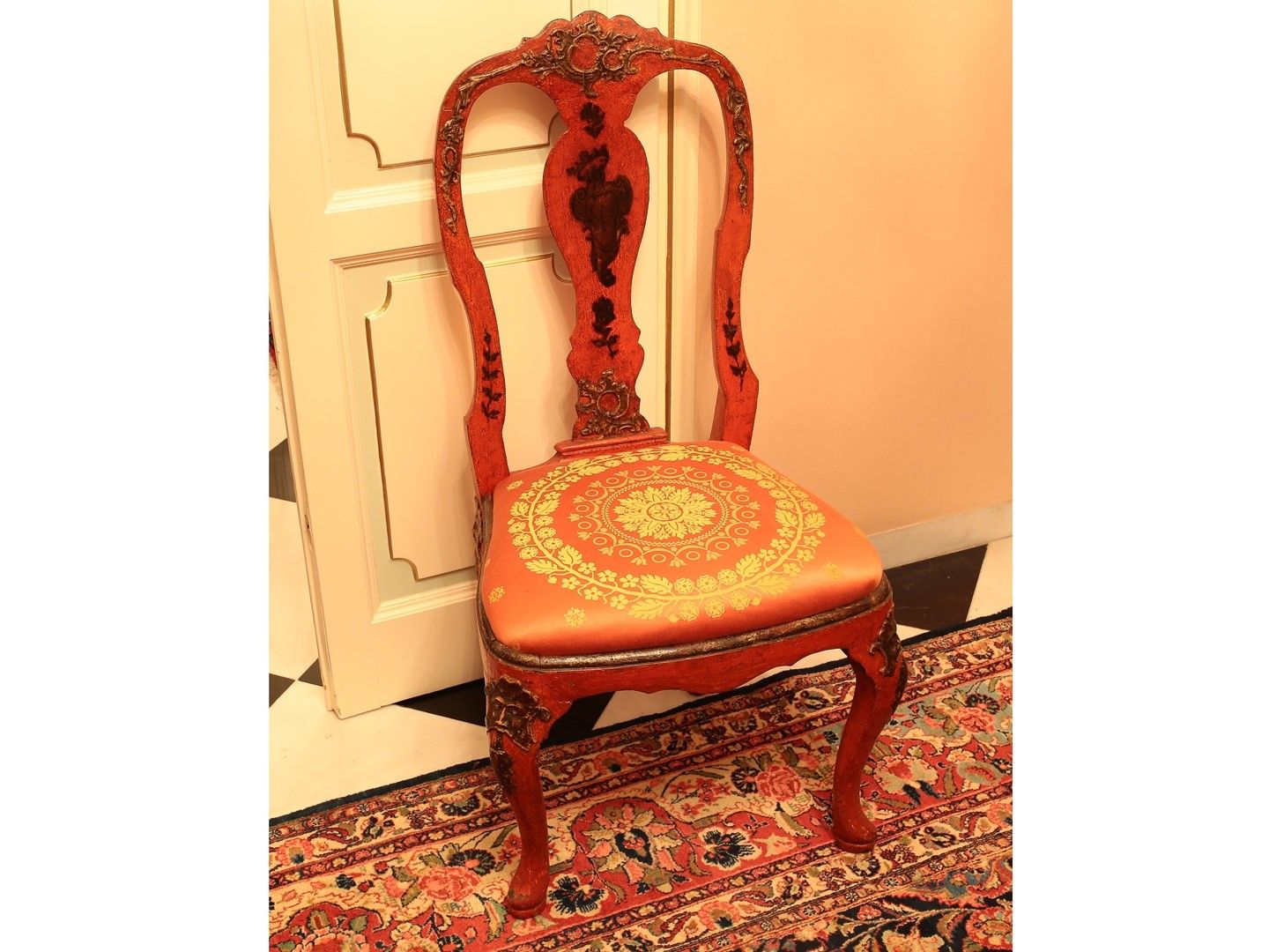 Sedia in legno laccato e lumeggiato in oro  - Asta Casa Lazzi - parte prima Arredi, dipinti, vetri di Murano, curiosità - Associazione Nazionale - Case d'Asta italiane