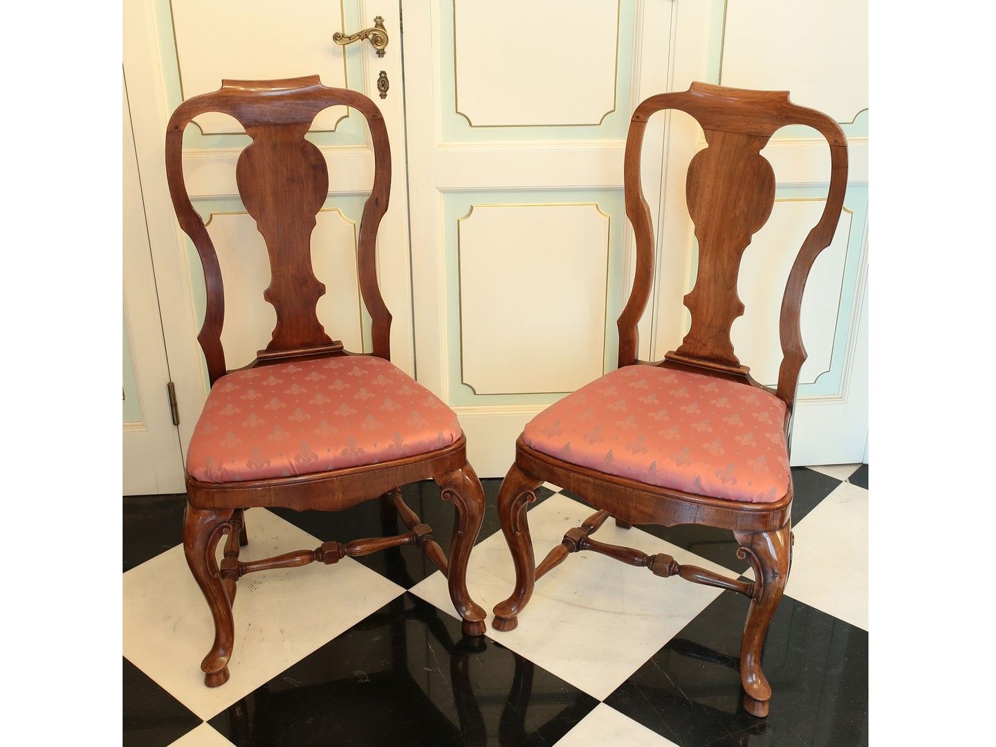 XVIII secolo cartella mossa, seduta imbottita e foderata in raso di colore rosa con motivi a giglio, gambe mosse riunite da traversa, restauri