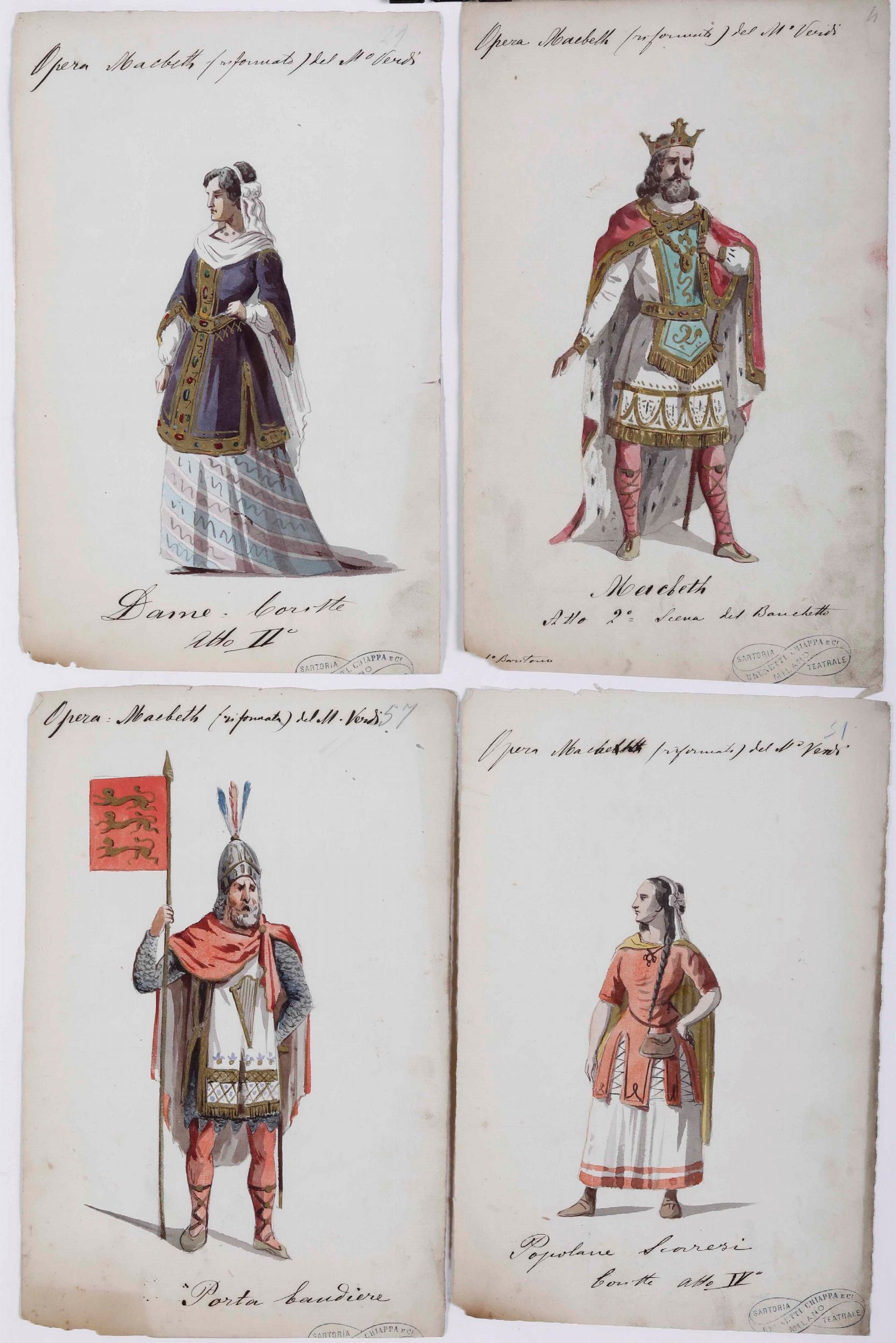 Scuola del XIX secolo Figurini per il Macbeth di Verdi. Sartoria Teatrale Chiapp [..]