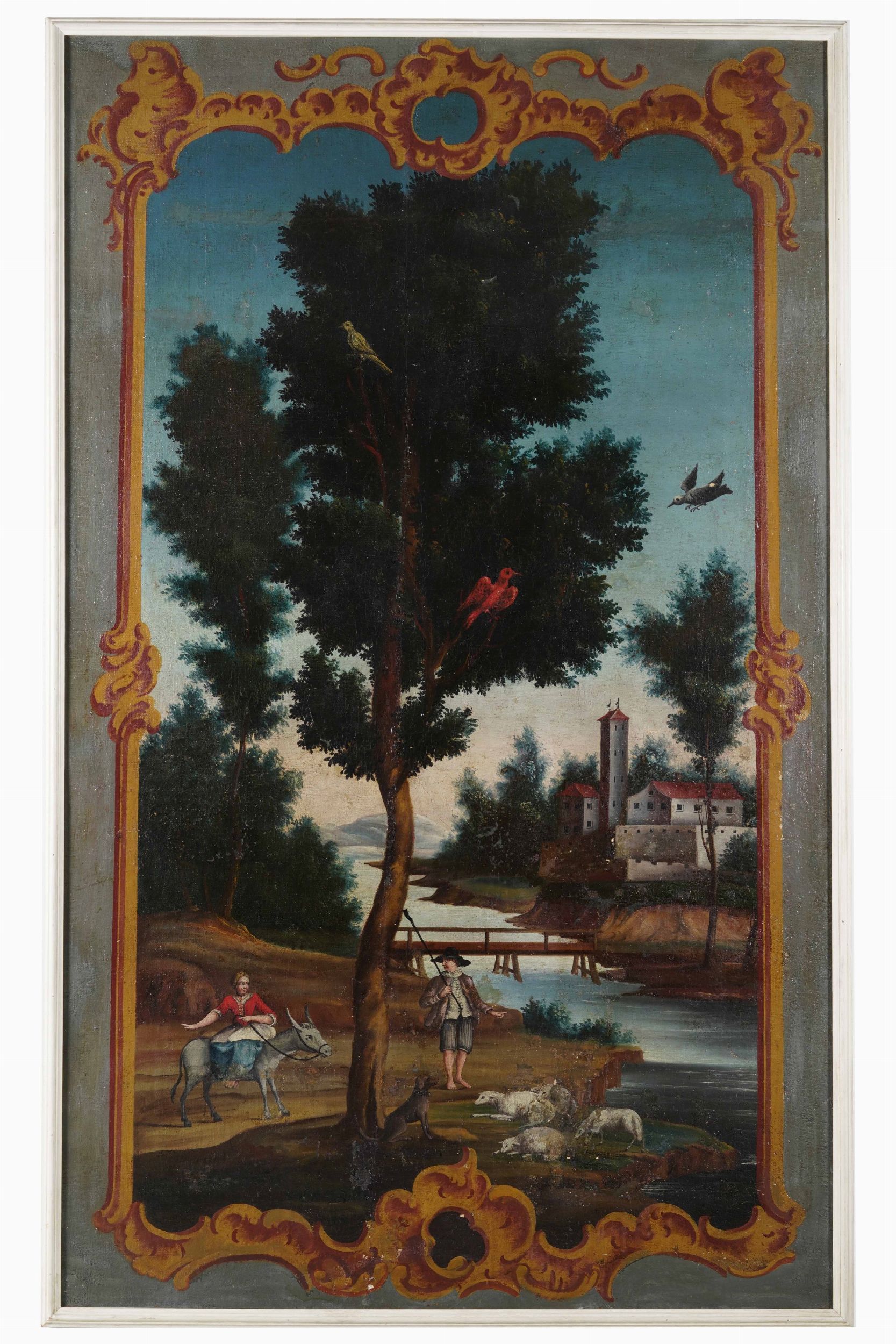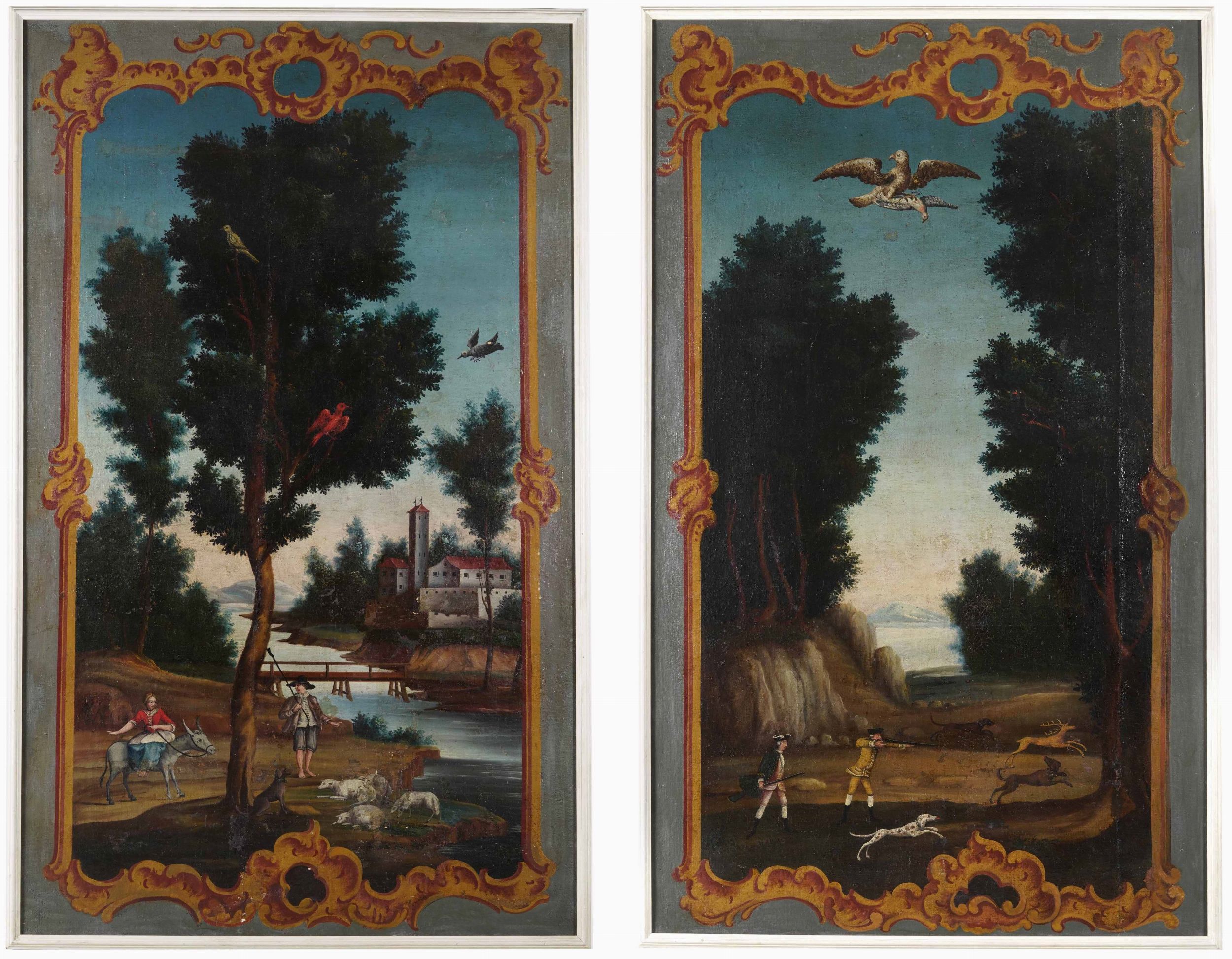 Scuola del XVIII secolo Paesaggi con cacciatori e contadini