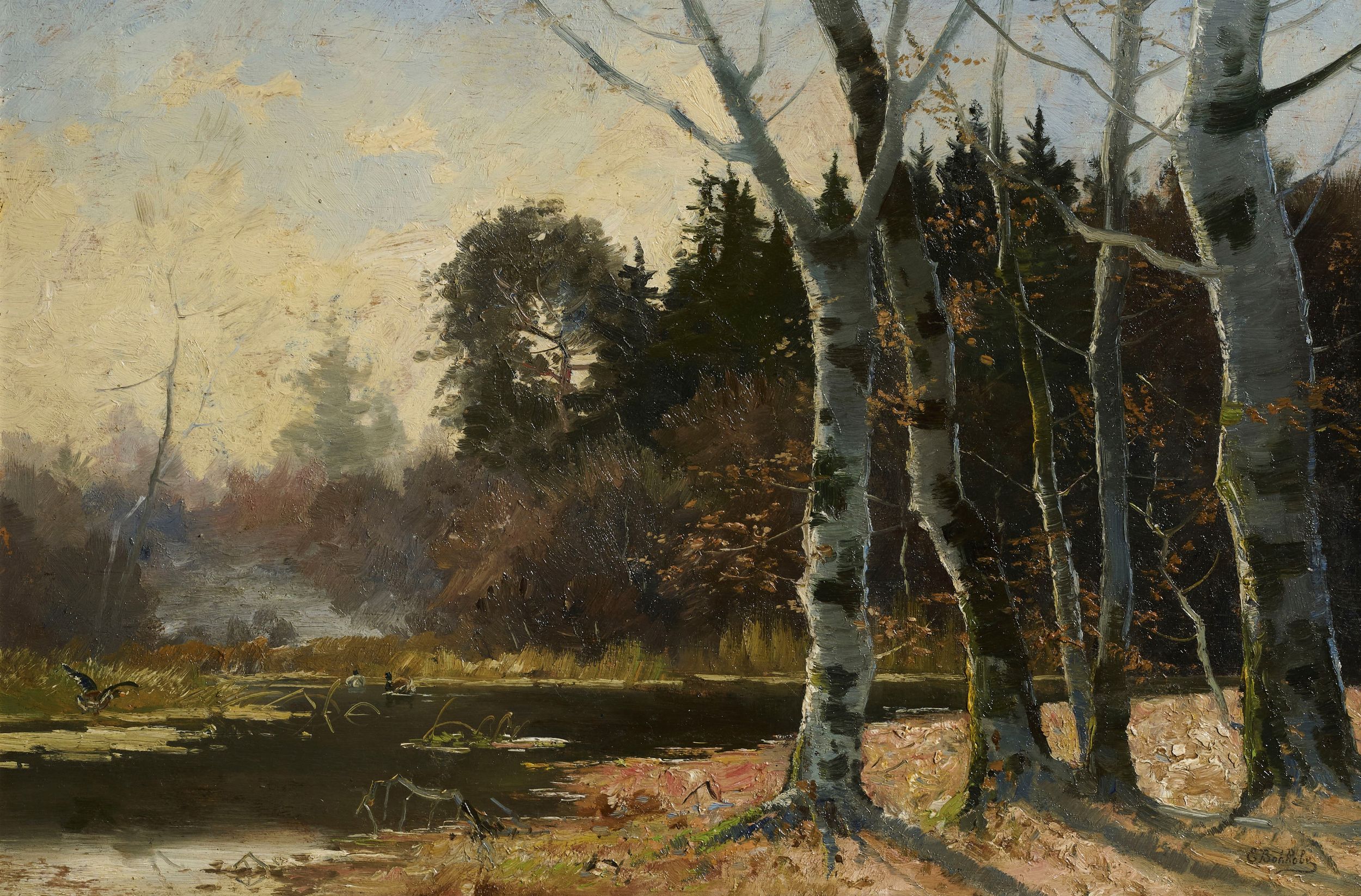 Bosco con laghetto e anatre