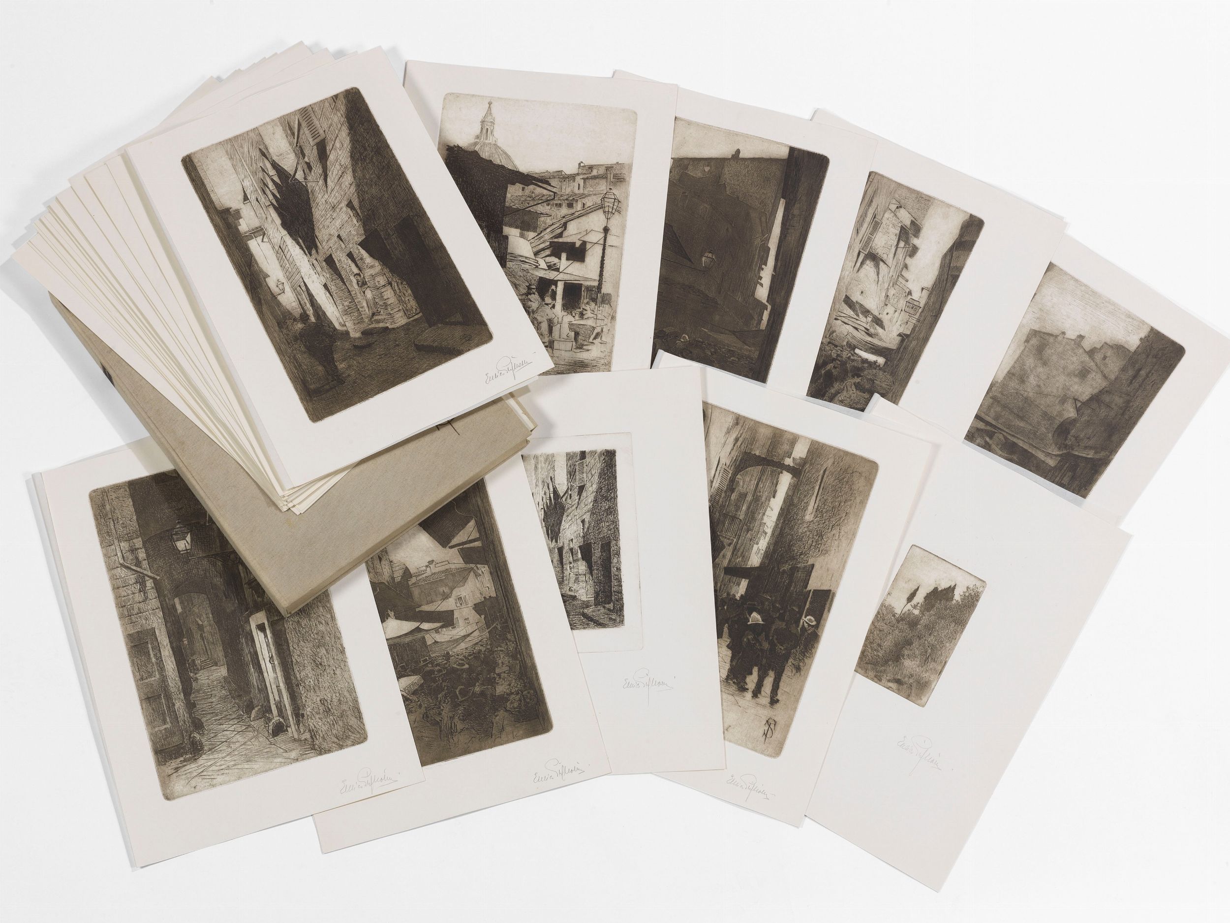 Cartella con 33 acqueforti, es. 00077/100, cm. 48x35 (cartella)