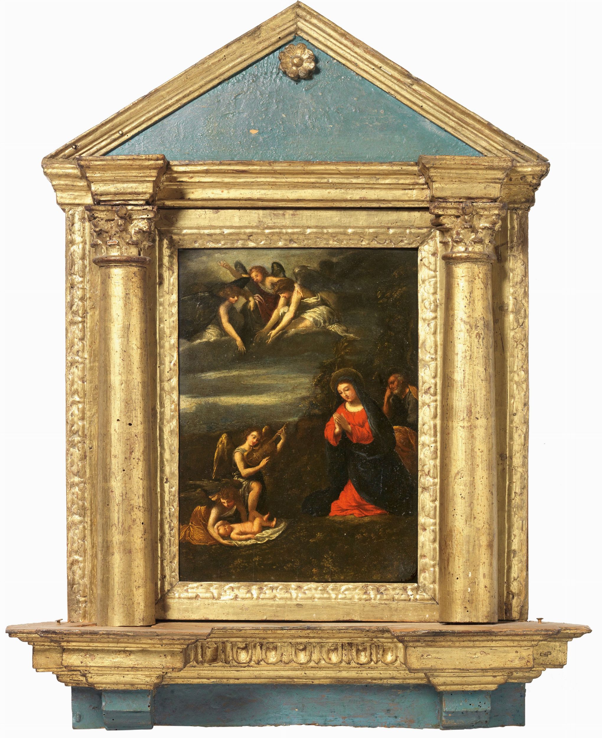 Olio su tavola, in tabernacolo in legno dorato, cm. 32x25