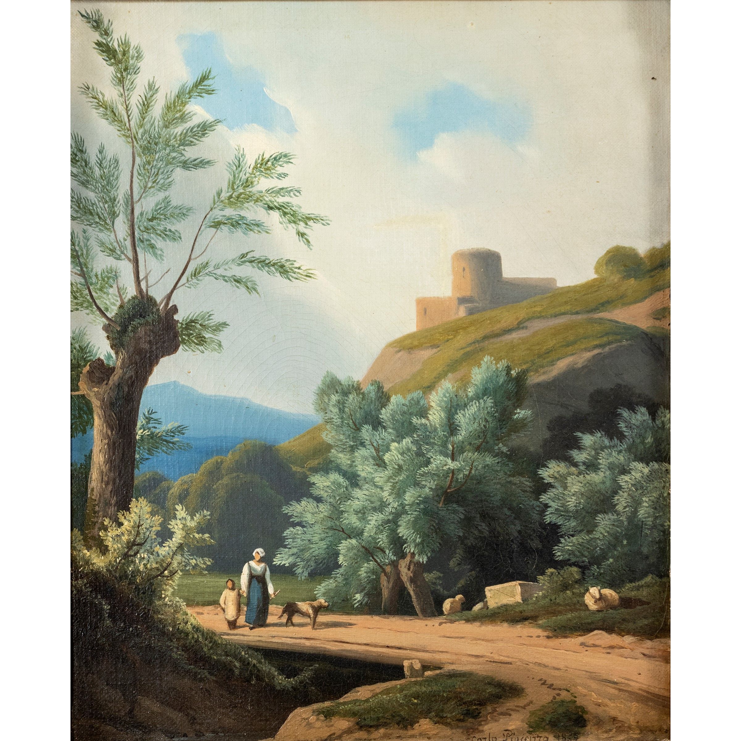 Torino 1814 - Castiglione Torinese 1887 Paesaggio con sentiero, 1869, olio su tela, firmato e datato in basso a destra
