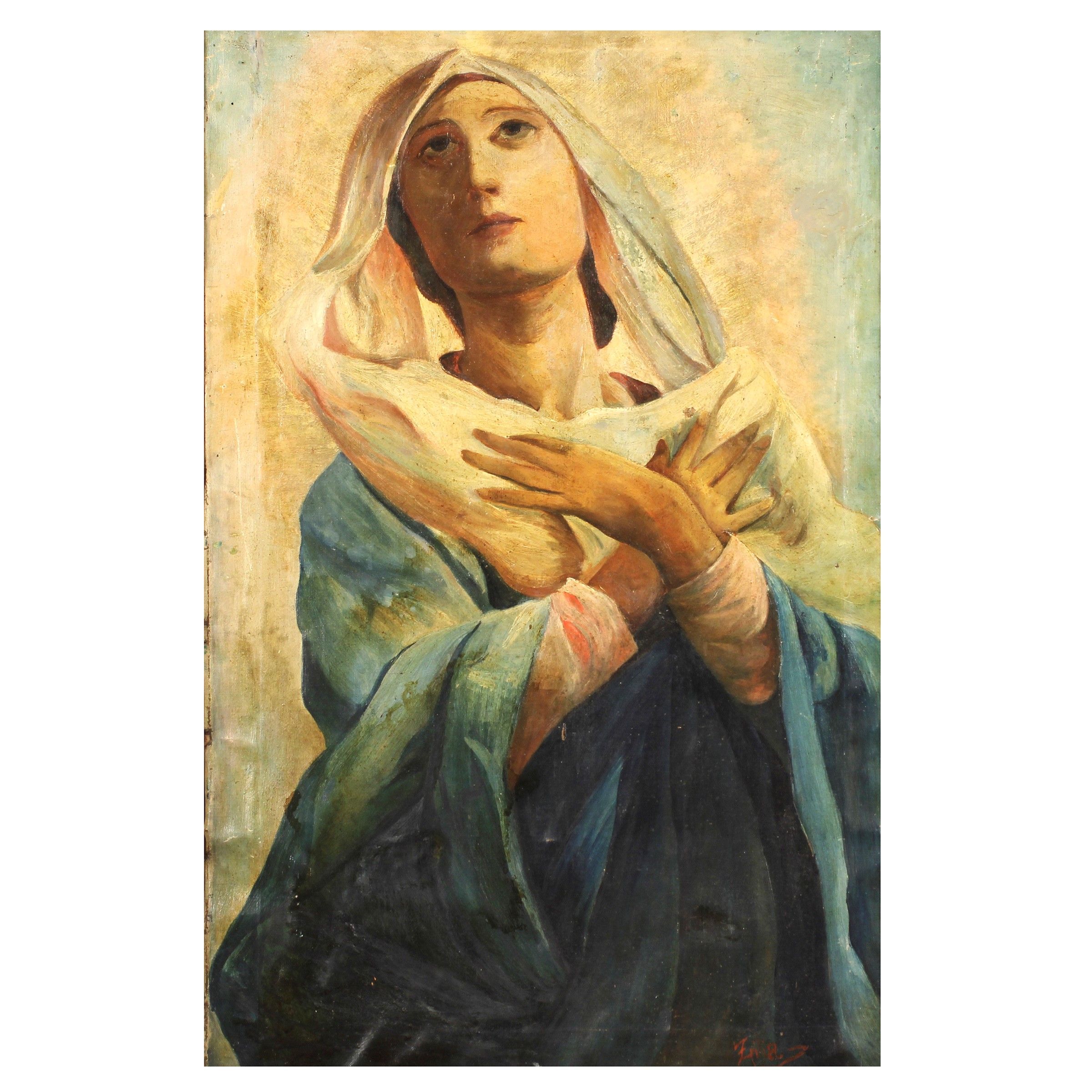 XX Sec. Madonna, olio su tela, firmata in basso a destra, entro cornice