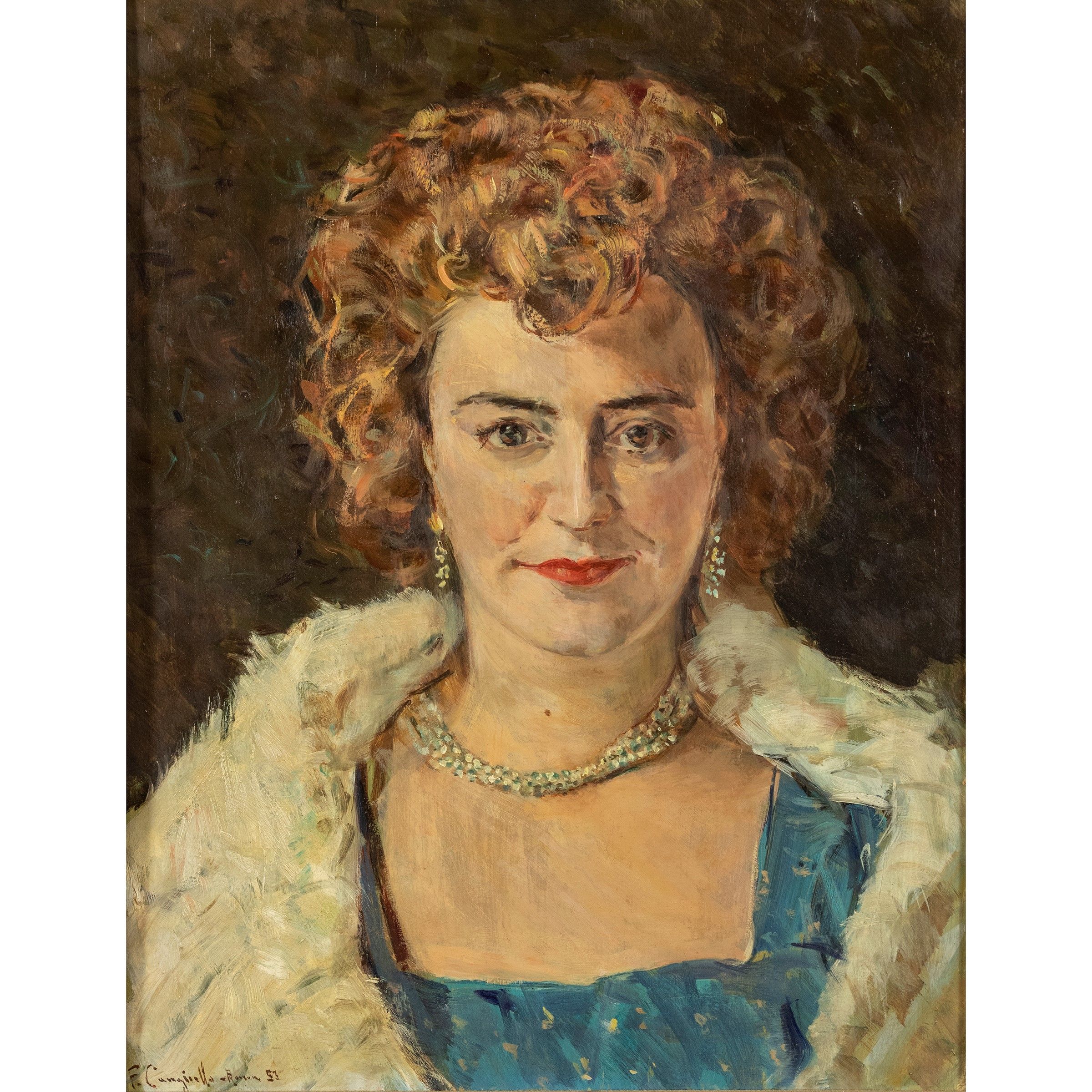 Napoli 1884 - Livorno 1977 Ritratto femminile, 1953, olio su tavola, firmato in basso a sinistra, entro cornice