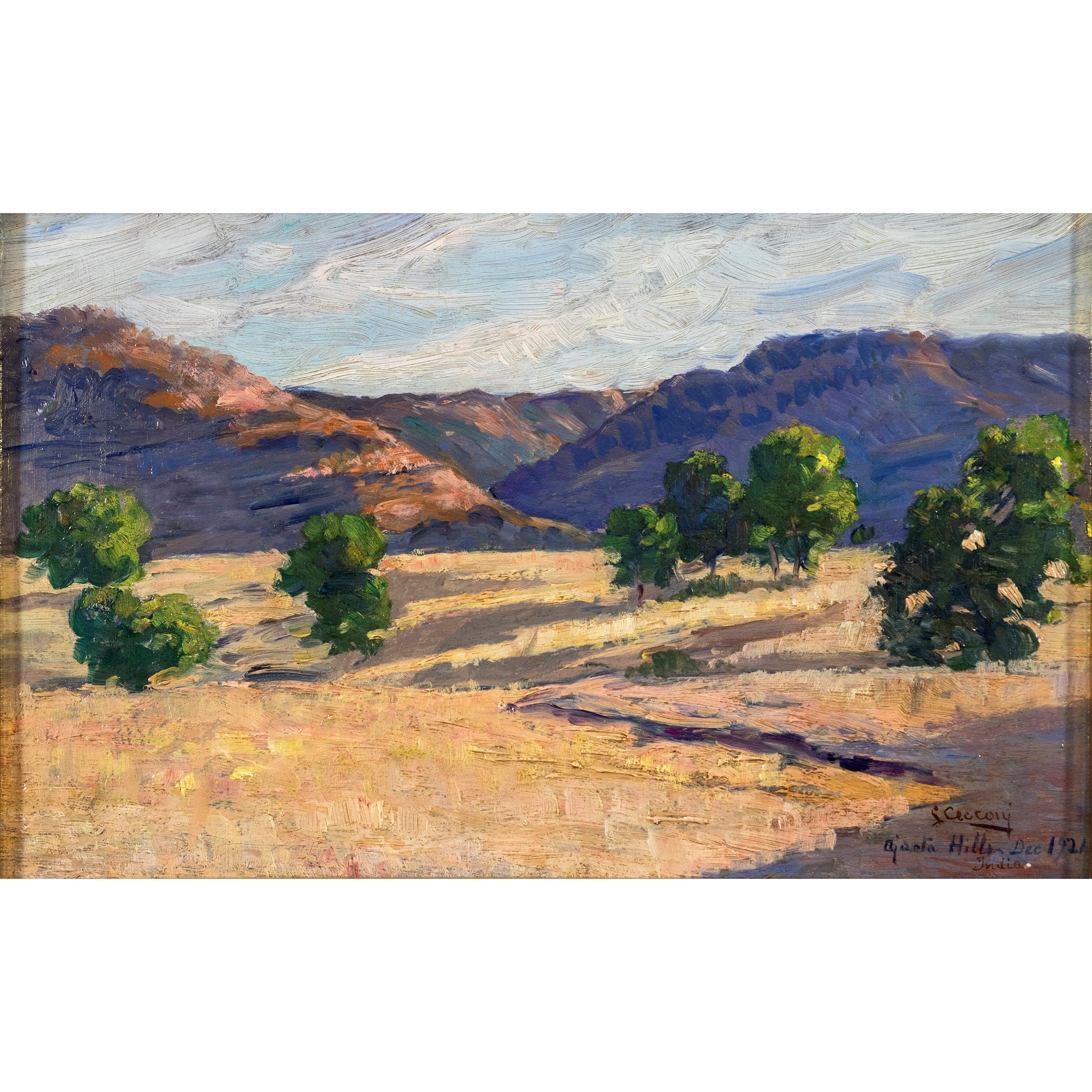 Roma 1863 - 1947 Paesaggio collinare, 1921, olio su tela, firmato e datato in basso a destra, entro cornice