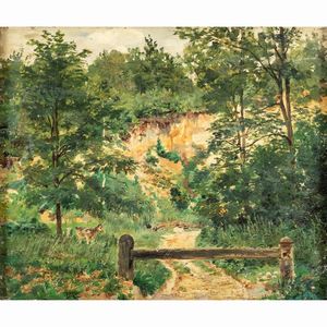 38x45 cm. XIX-XX Sec. Paesaggio boschivo, olio su tela, entro cornice