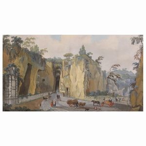 41x75 cm. XVIII - XIX Sec. Grotta di Pozzuoli, gouache su carta, entro cornice