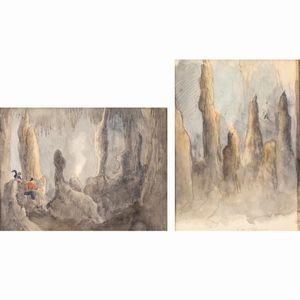 20x15 - 15x20 cm. XIX Sec. Grotte di Collepardo, coppia di acquerelli su carta, entro cornici