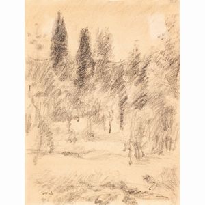 29,5x23 cm. Rignano sull'Arno 1879 - Vittoria Apuana 1964 Paesaggio, 1939, carboncino su carta, firmato in basso [..]