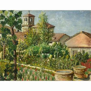 19x24,5 cm. Salerno 1872 - Parigi 1948 Scorcio con campanile, olio su tela, firmato in basso a destra, entro [..]