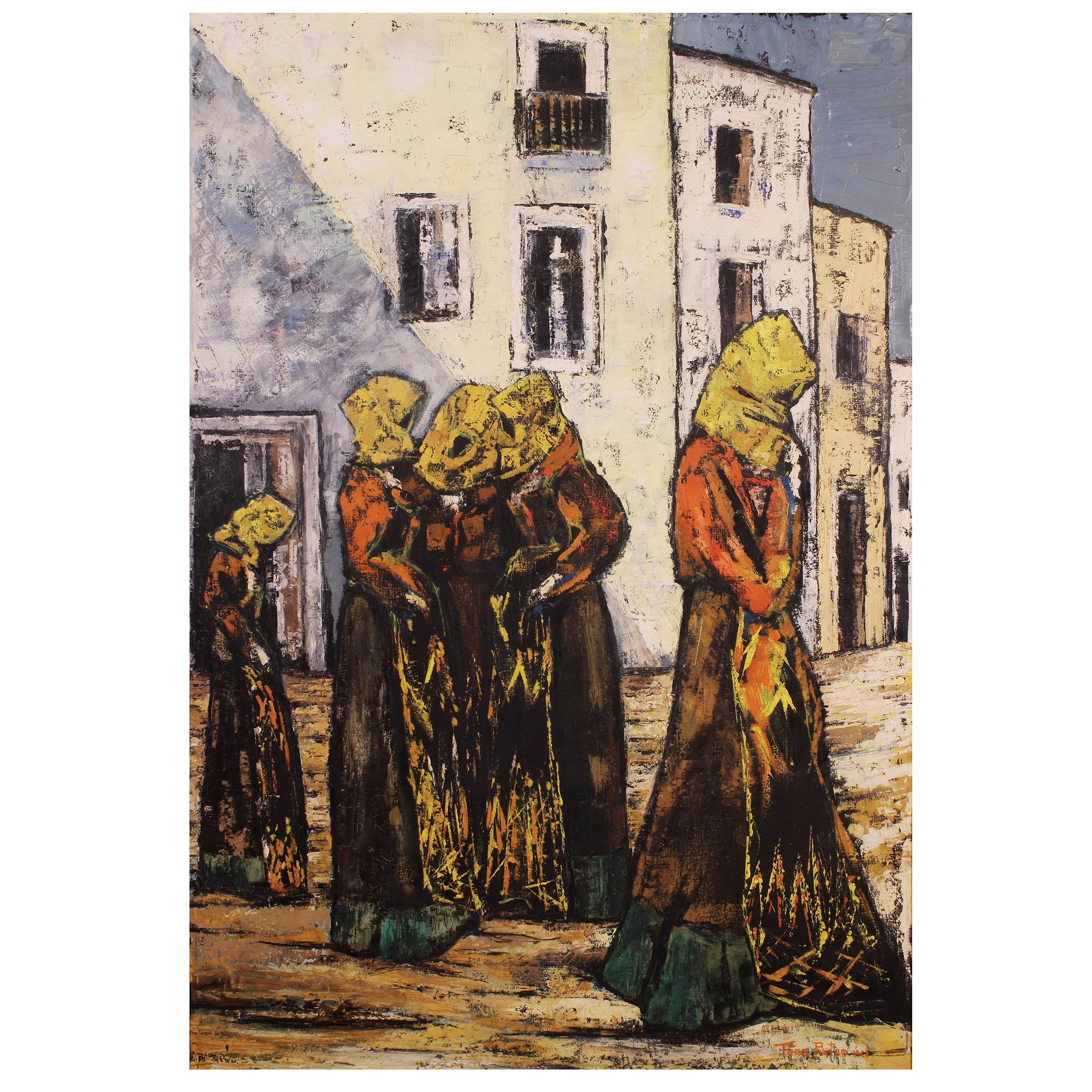 Tempio Pausania 1928 - Cagliari 2009 Donne sarde, olio su tela, firmato in basso a destra, entro cornice