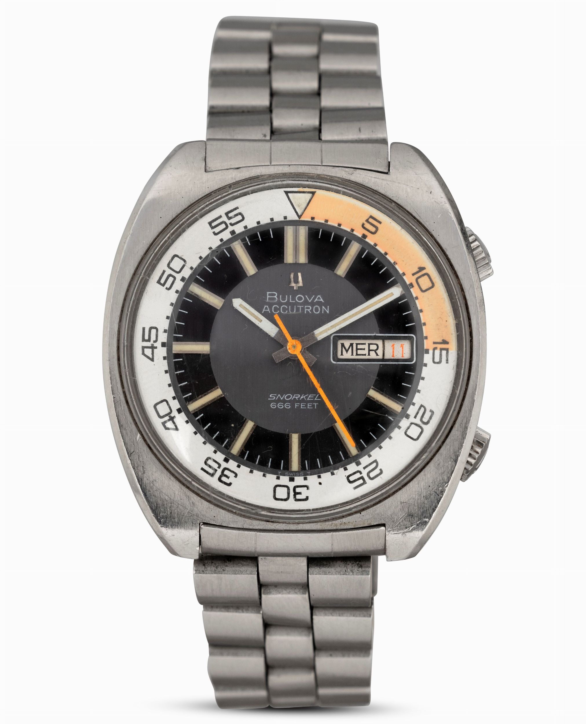 Accutron Snorkel in acciaio doppia corona, quadrante bitonale con indicazione di [..]