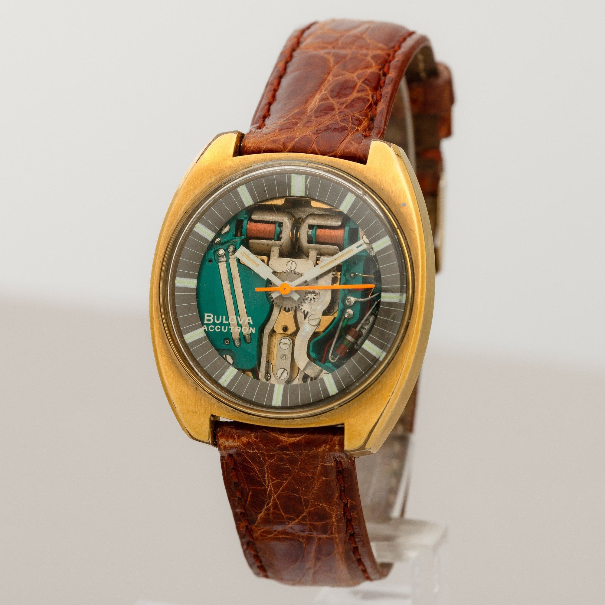 Accutron Spaceview laminato con quadrante a vista di forma tonneau, cinturino in [..]