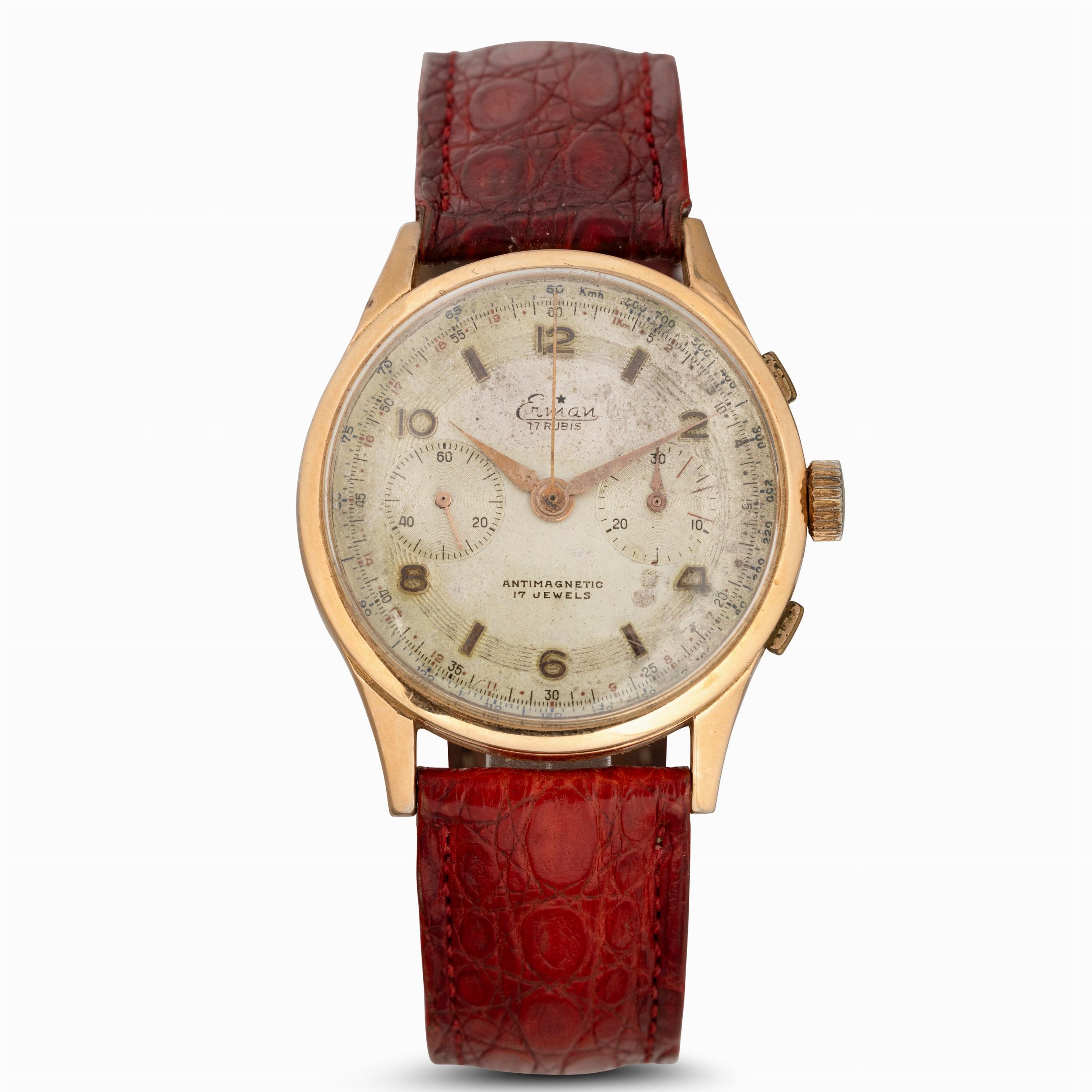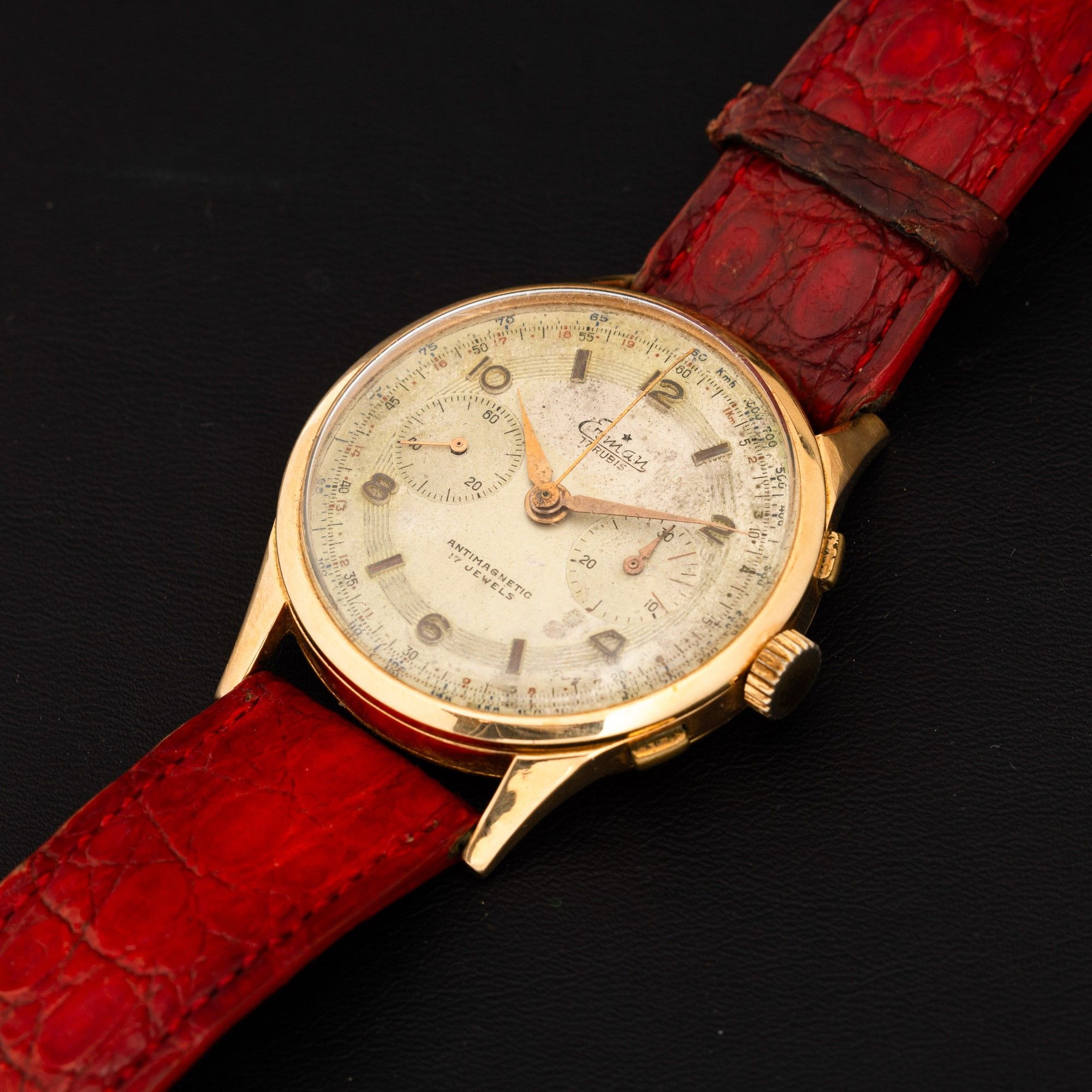 Cronografo due contatori in oro giallo 18k carica manuale Landeron tasti quadri, [..]