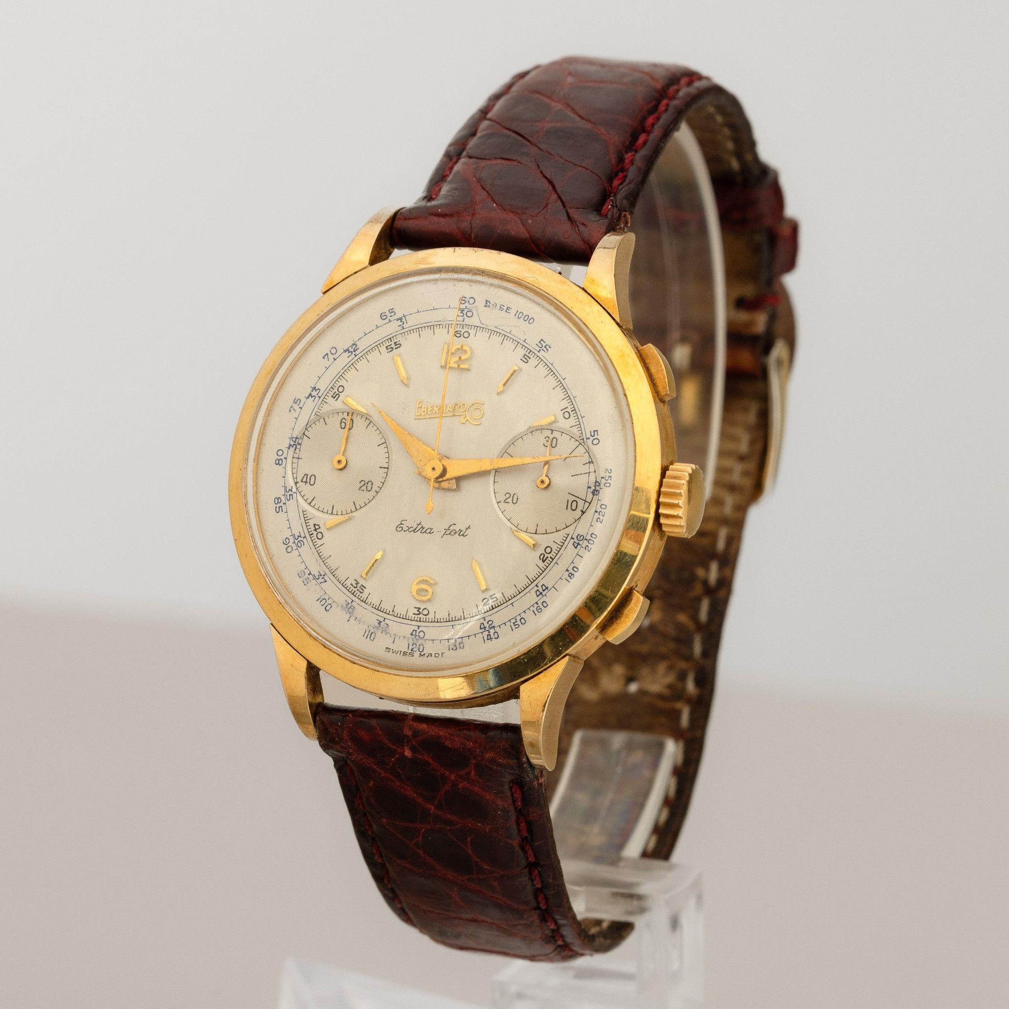 Extrafort in oro giallo 18k carica manuale, quadrante argentè due contatori e tasti [..]