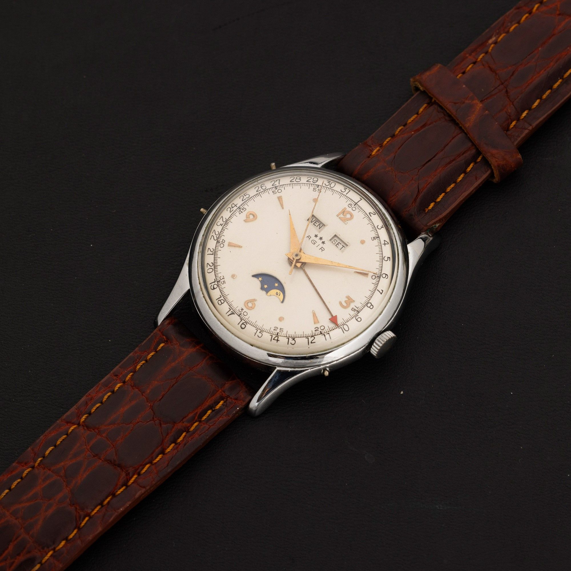 Orologio triplo calendario con fasi lunari carica manuale, cassa in acciaio, quadrante [..]
