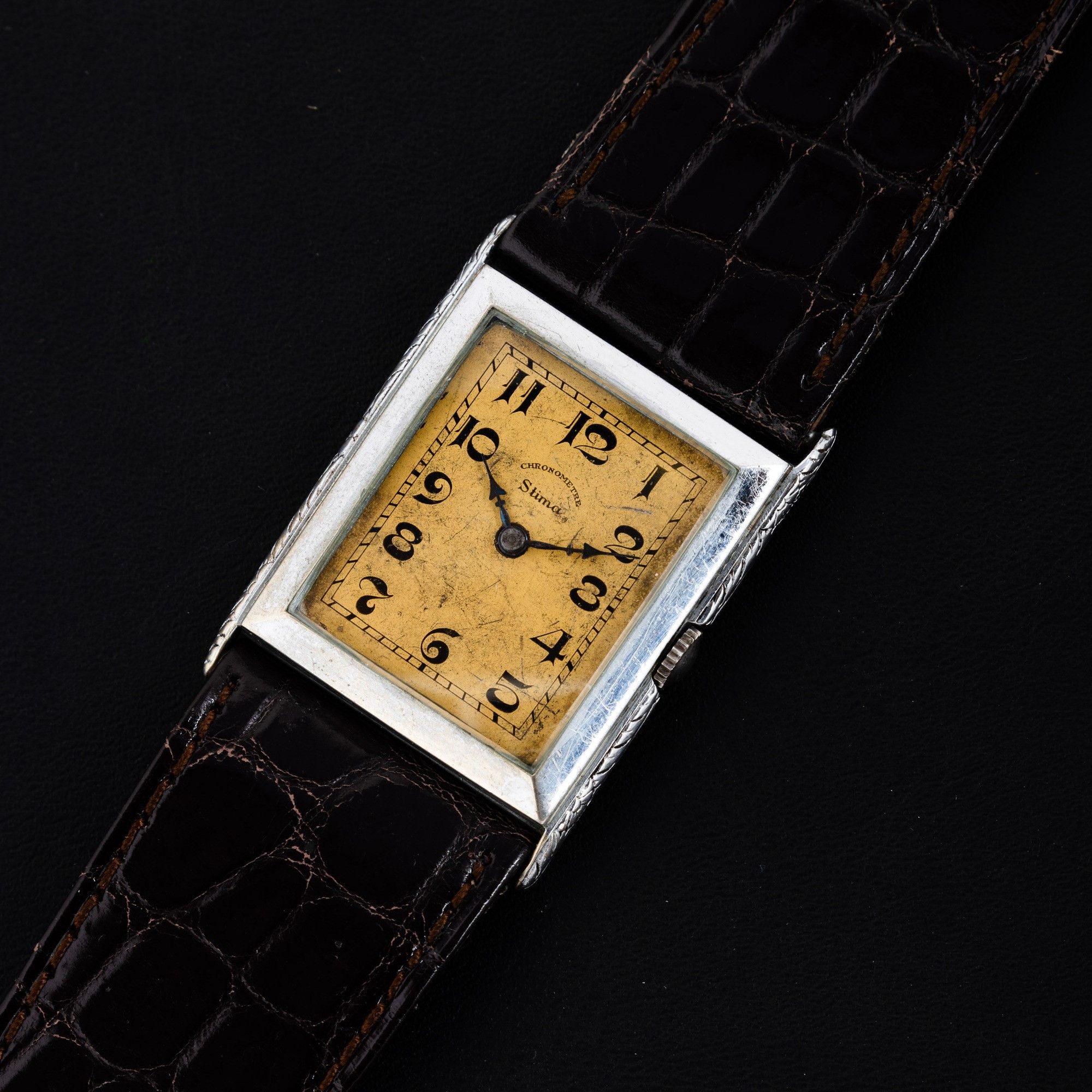 Oversize di forma in acciaio, carica manuale, quadrante argentè fanè con numero [..]