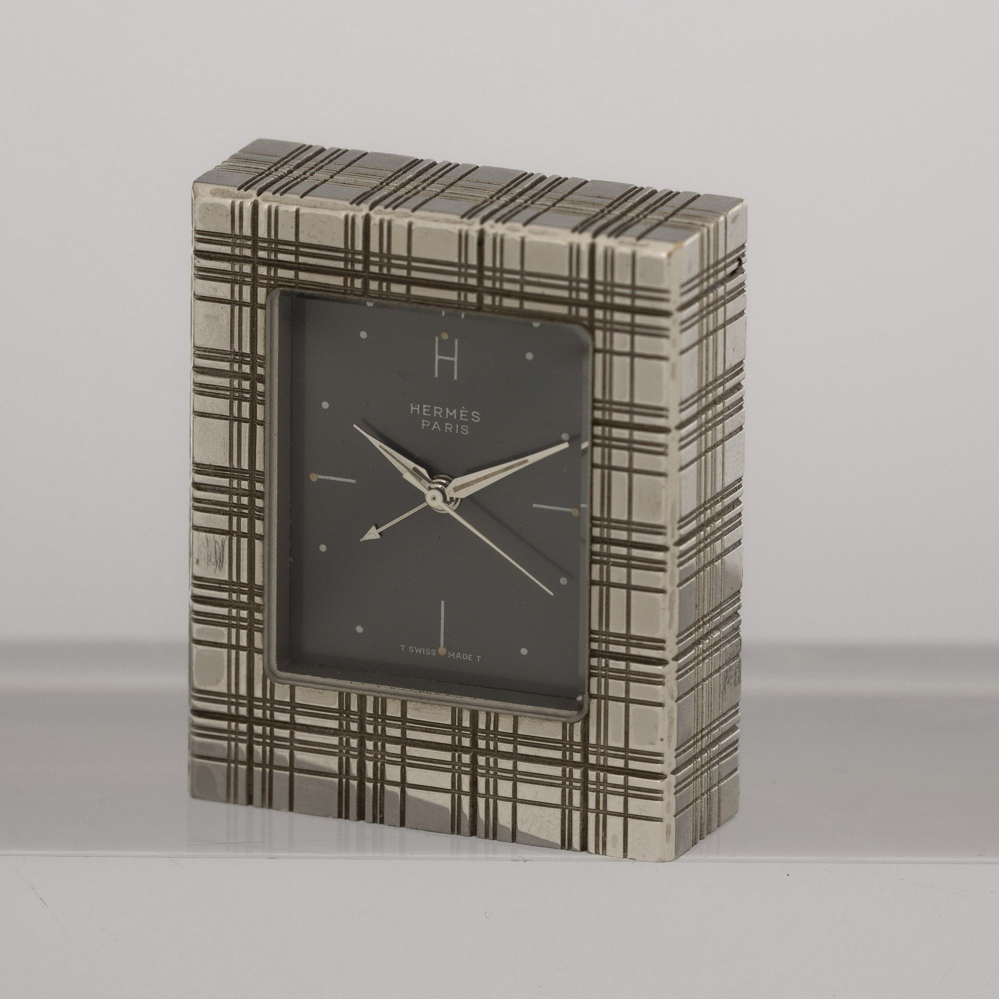 Pendoletta da viaggio argentata, carica manuale, quadrante nero con lancette a foglia, [..]