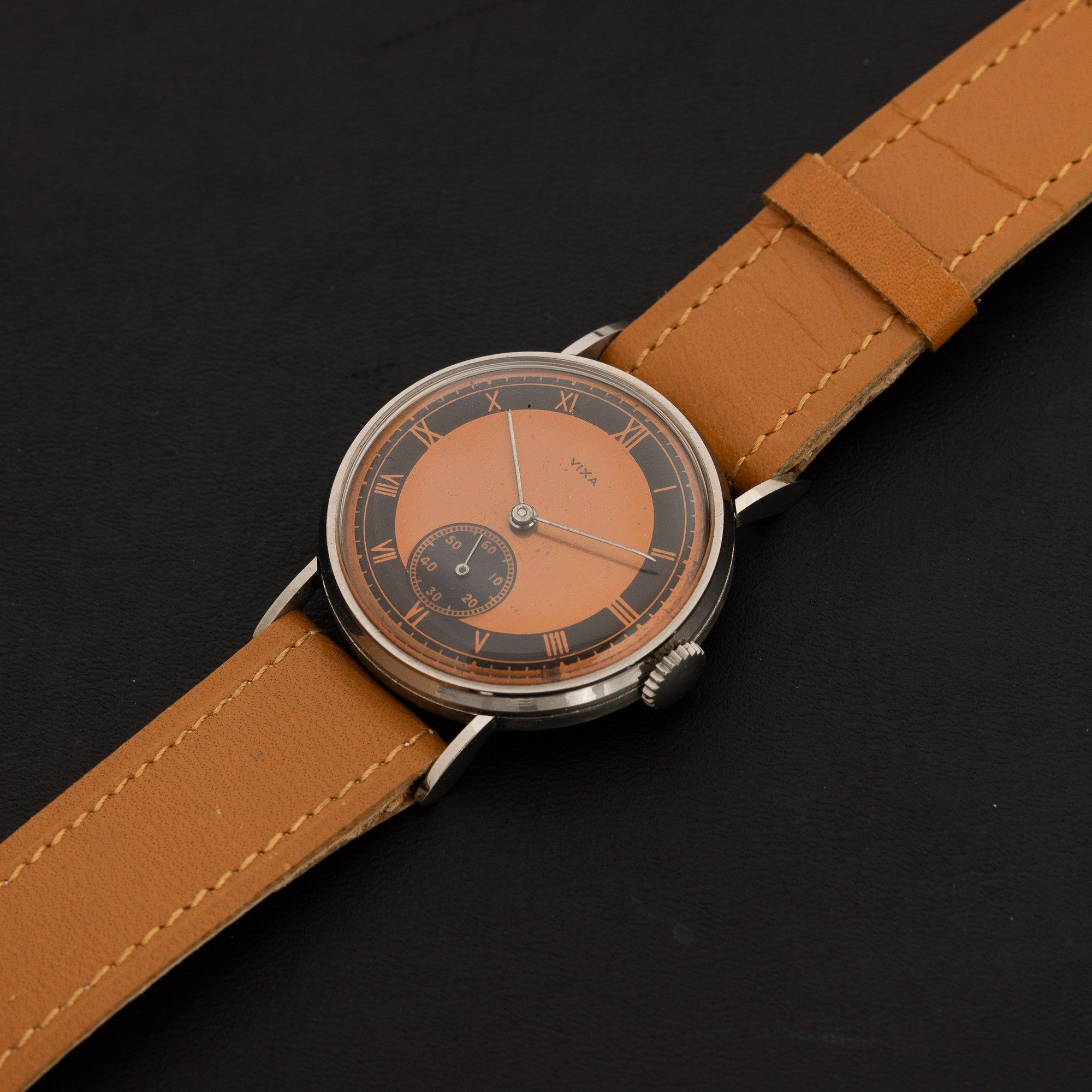 Solo tempo in acciaio, quadrante galvanico Salmone e nero lucido con numeri Romani [..]