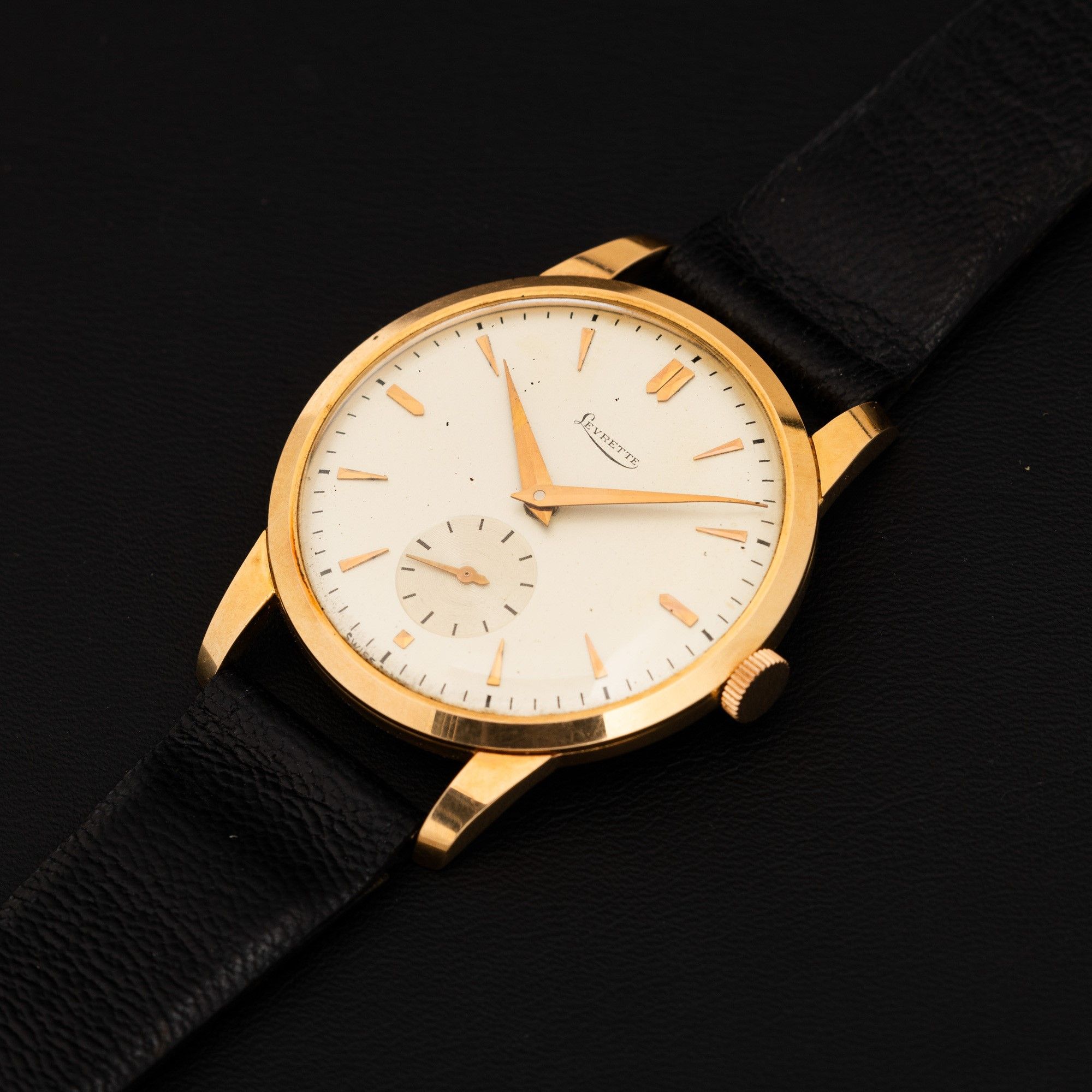Solo tempo in oro giallo 18k, carica manuale NOS, quadrante Argentè con indici applicati, [..]