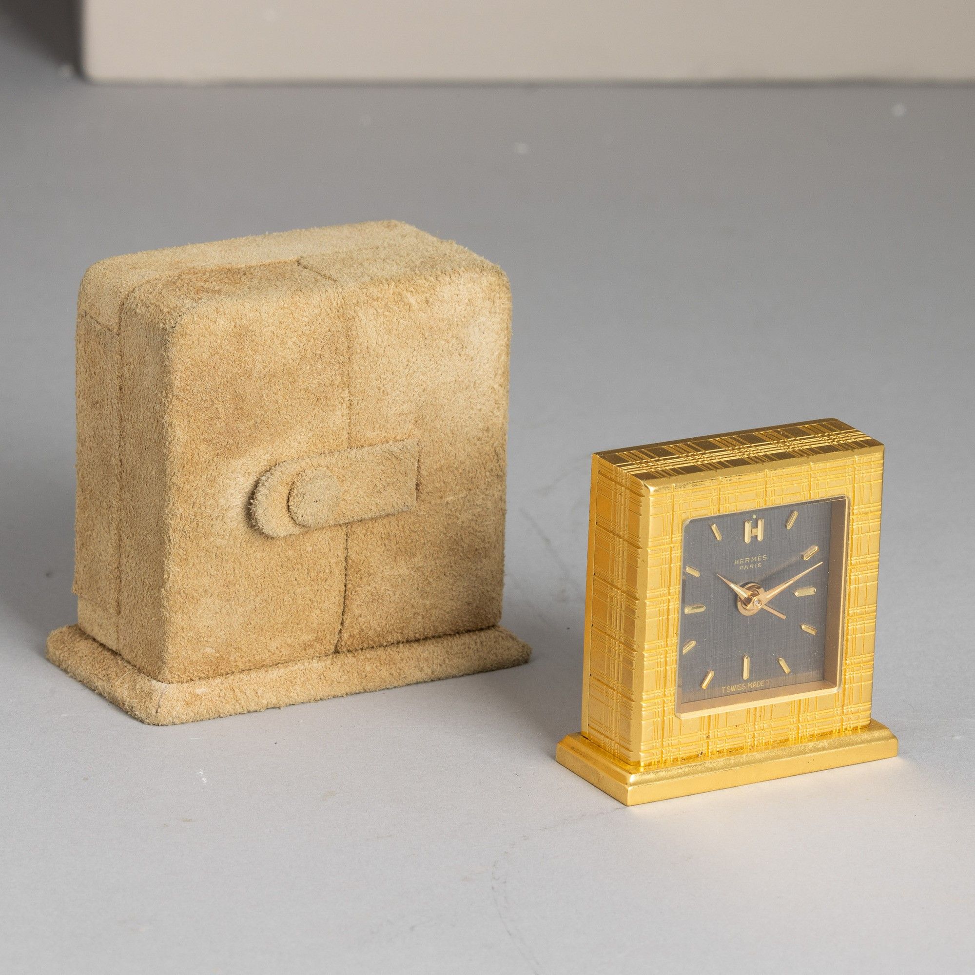 Sveglietta da viaggio in ottone dorato a carica manuale con astuccio originale, [..]