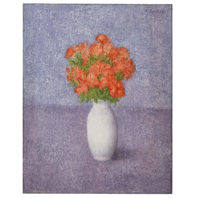 ANTONIO BUENO (Berlino 1918 - Fiesole 1984) Vaso di fiori 1970 olio su faesite cm 50x40 firmato in alto a destra al retro cartiglio Contemporarte Galleria, Firenze al retro iscritto a penna “8855”